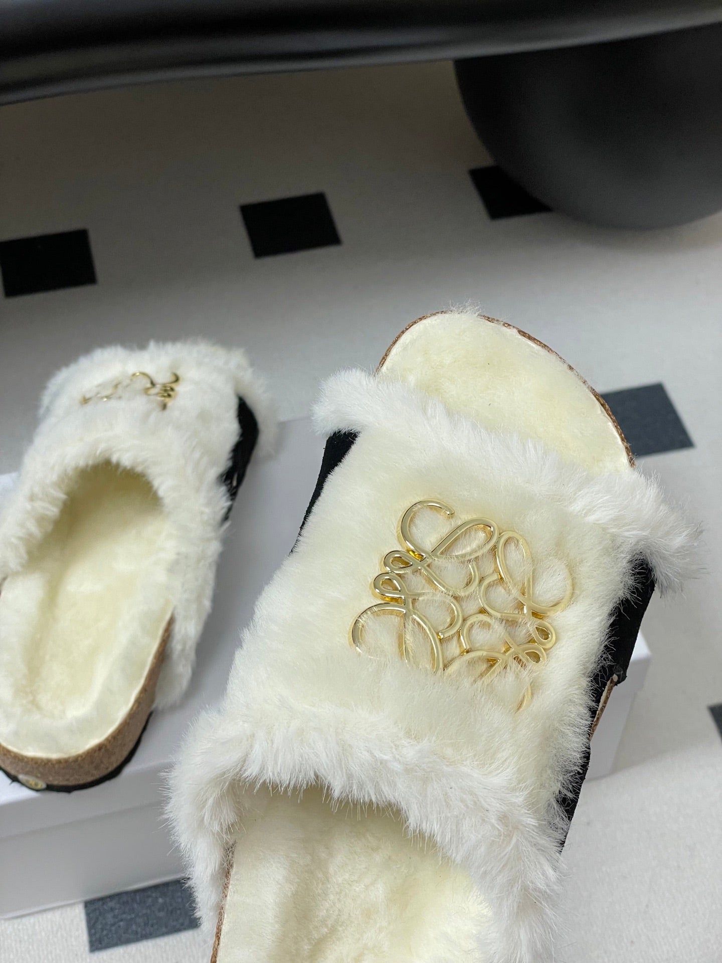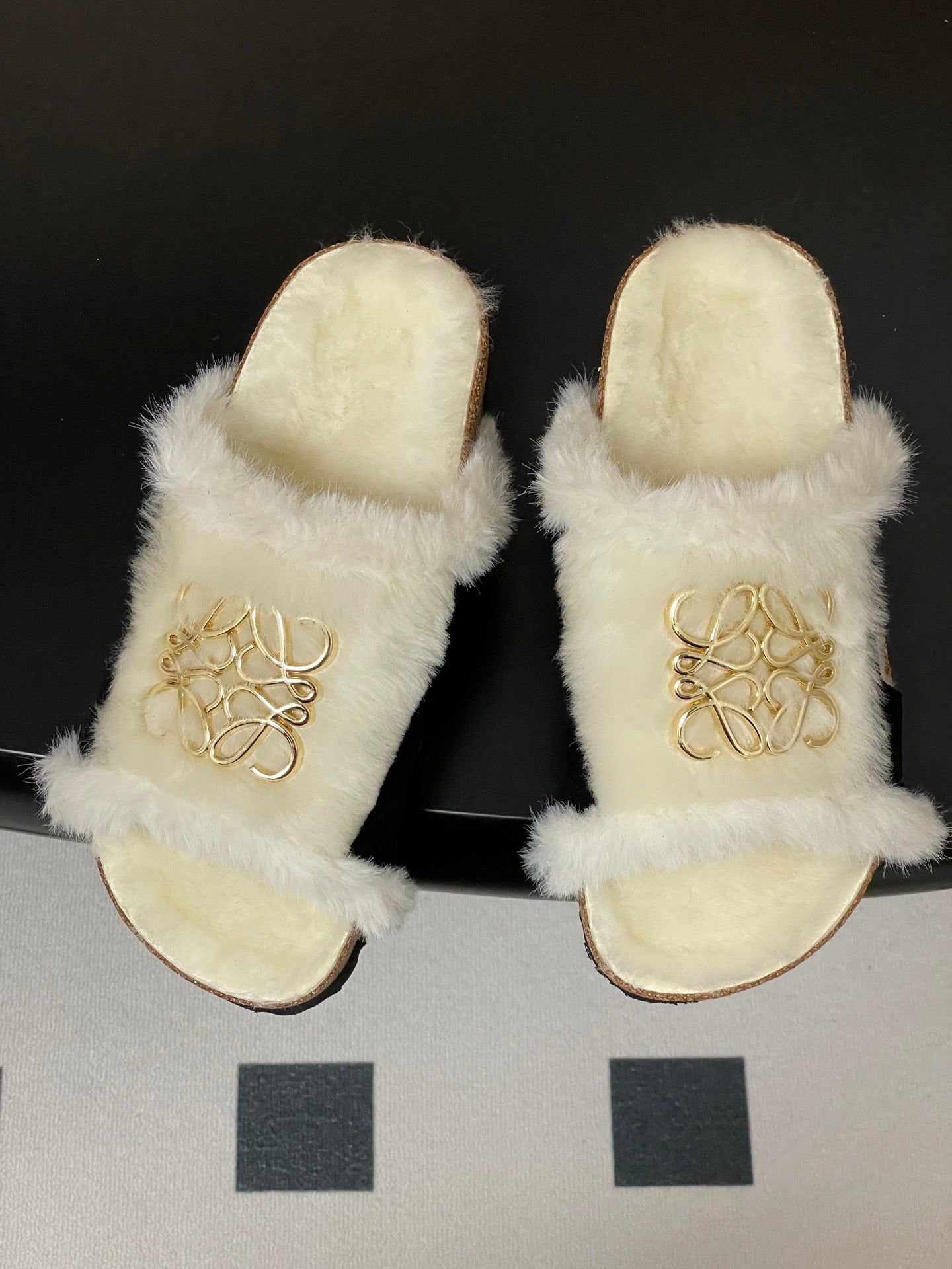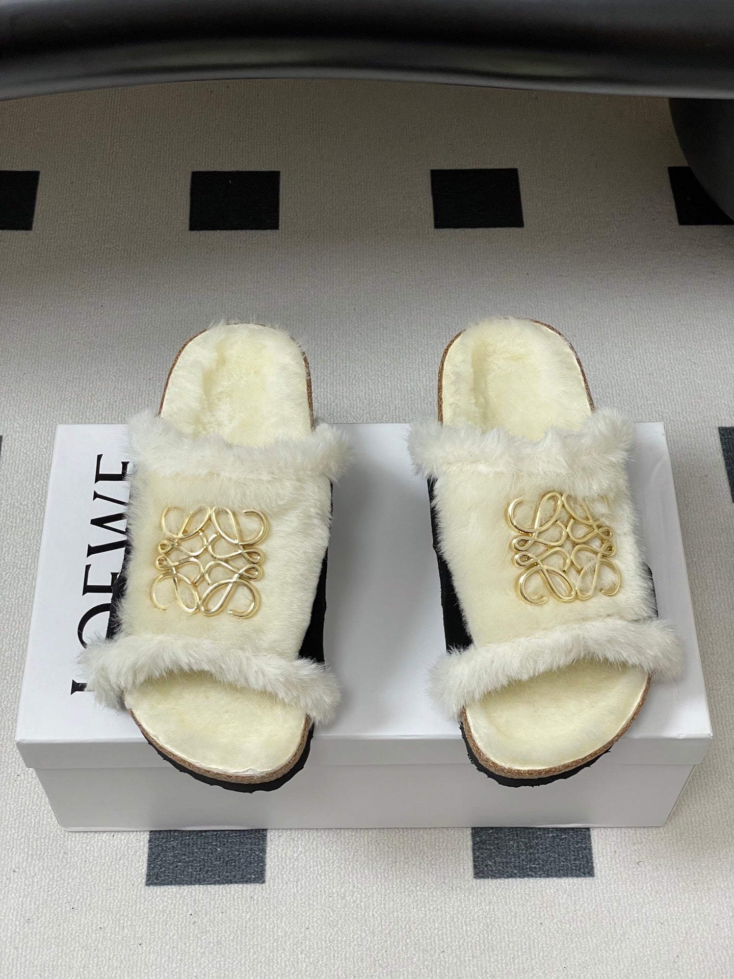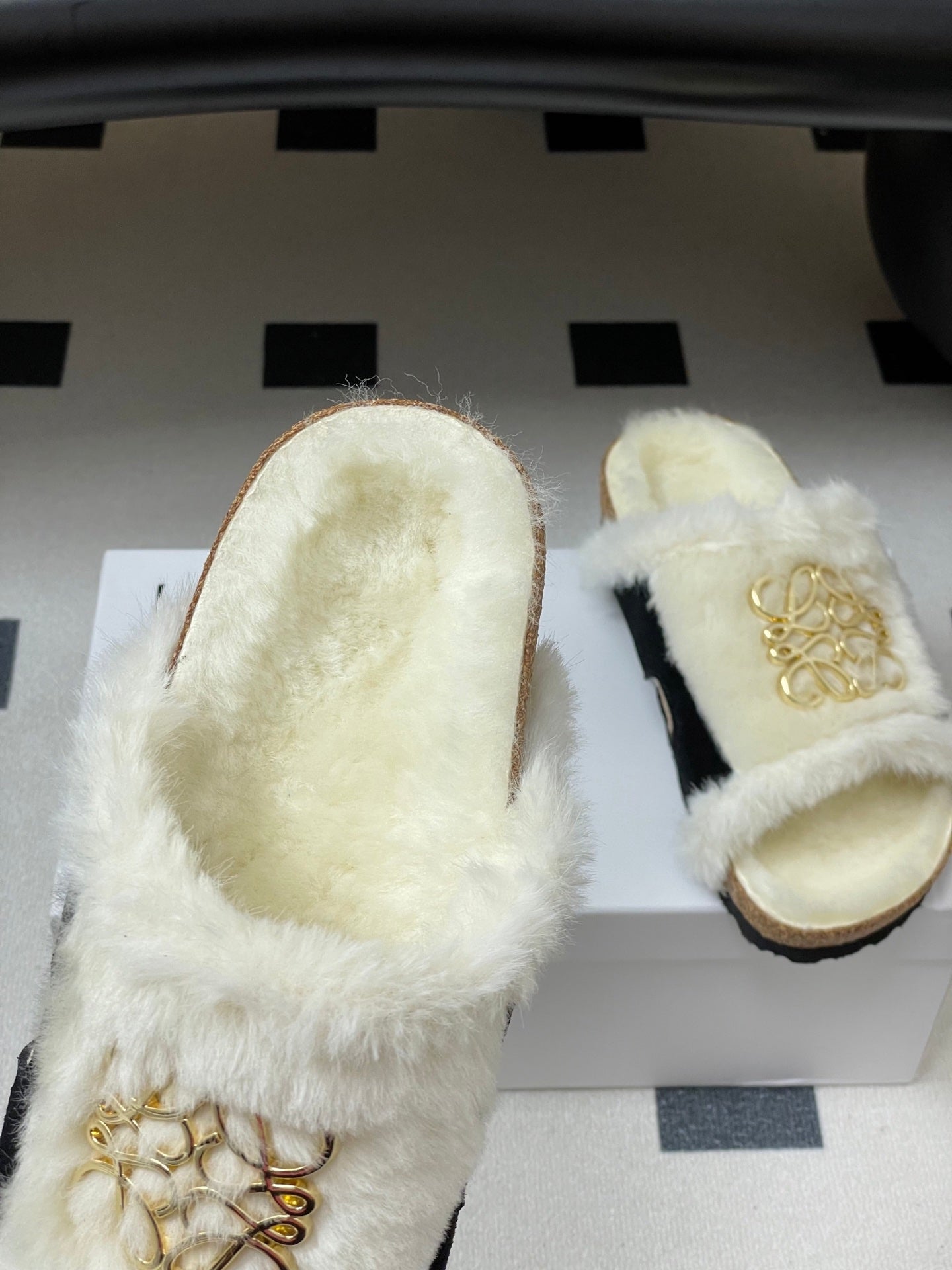 Loewe 2025 Fur Slipper Beige Wool 556017