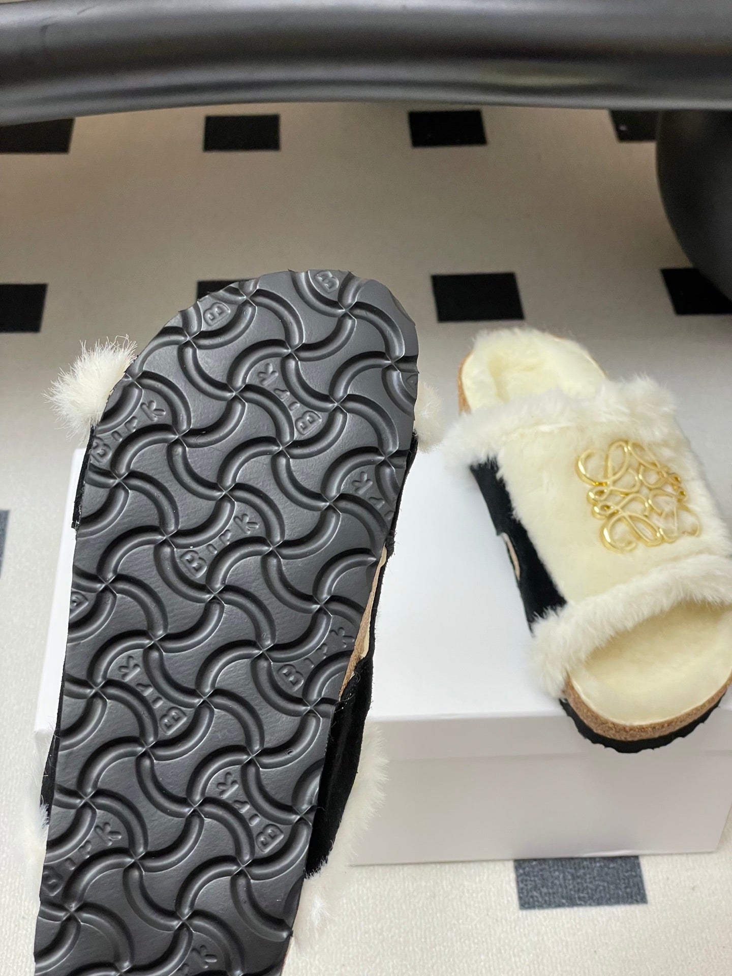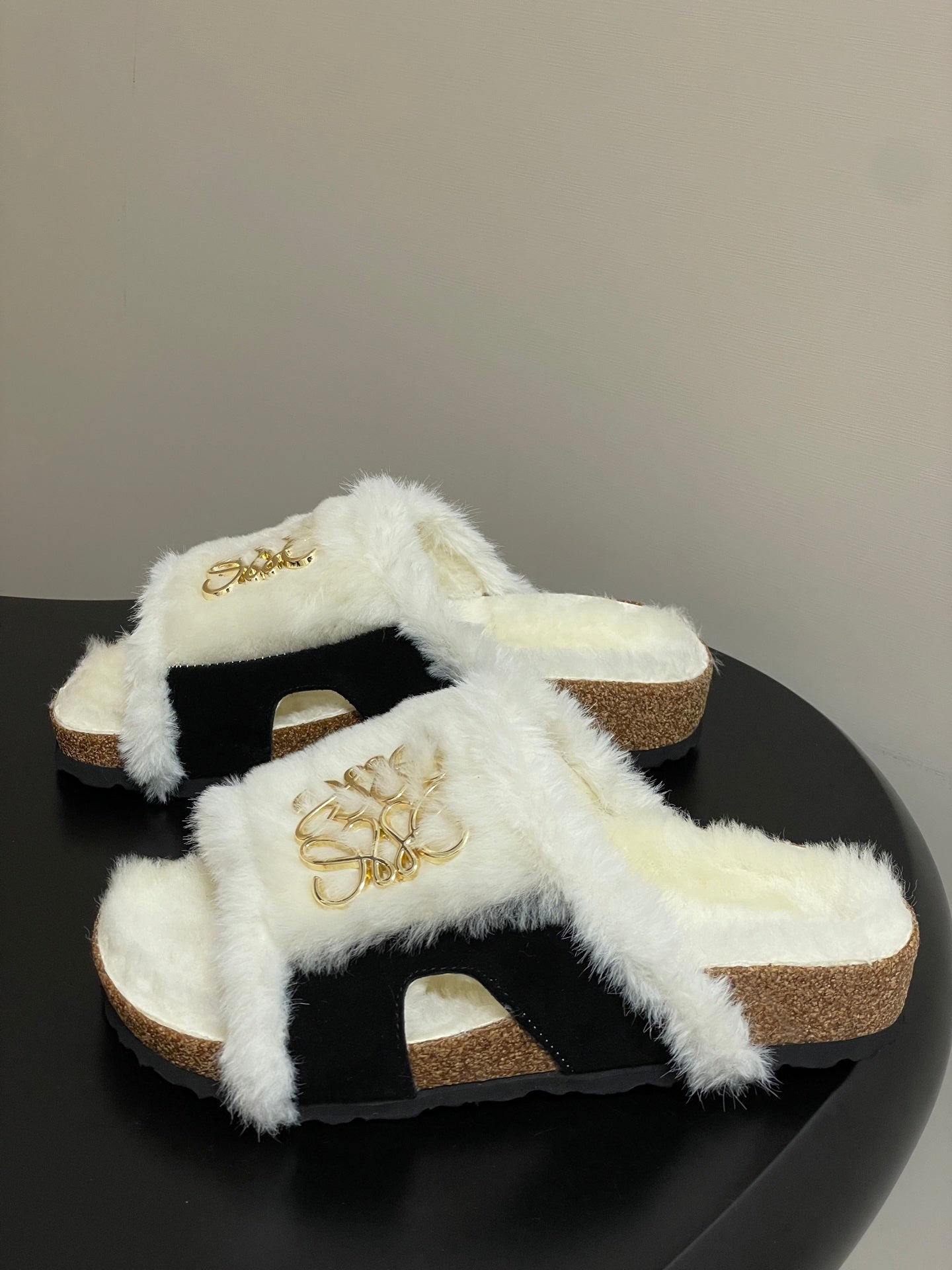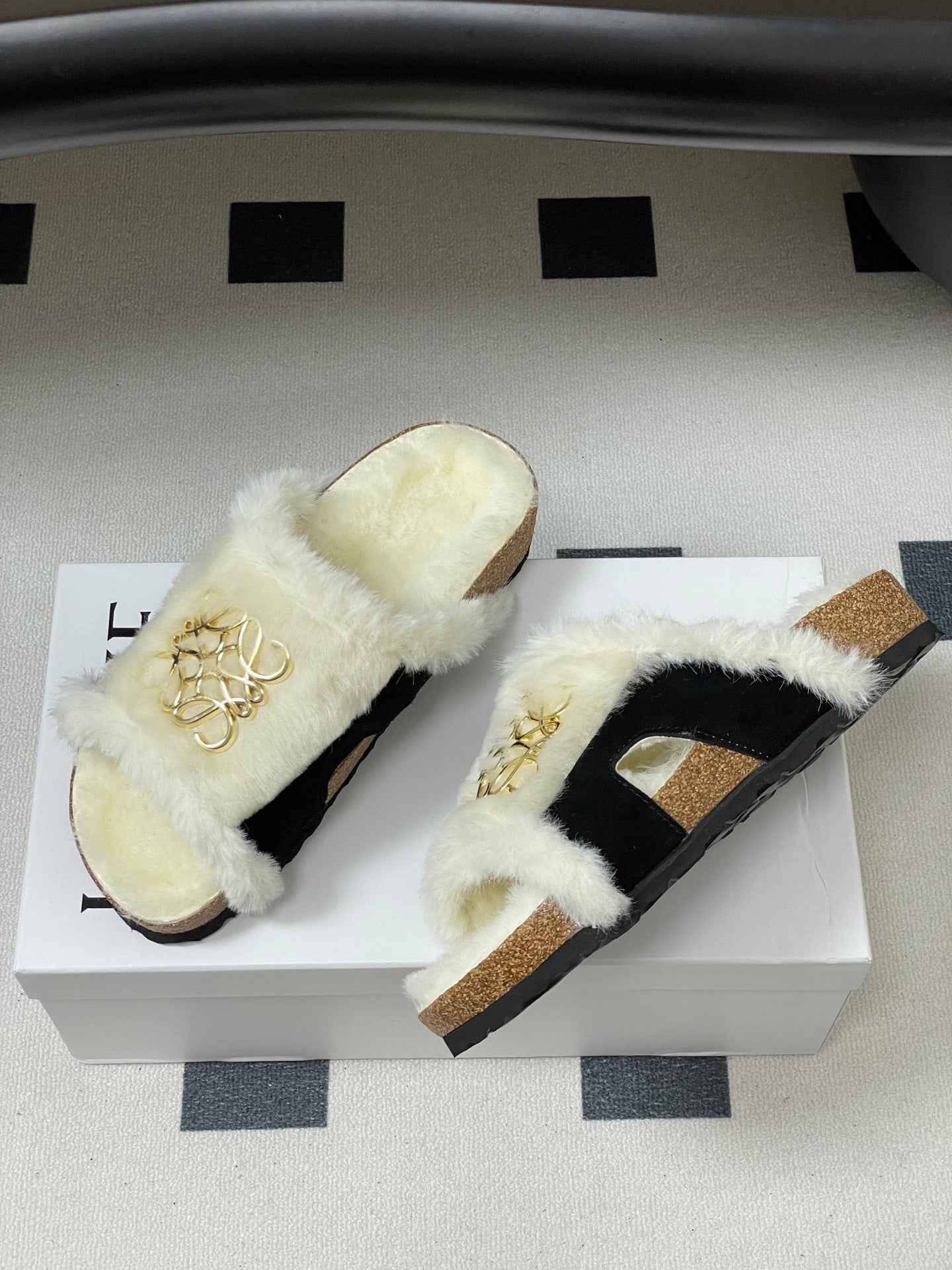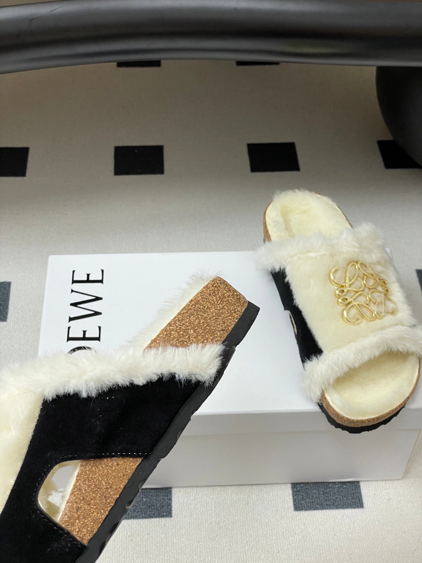 Loewe 2025 Fur Slipper Beige Black Wool 556015