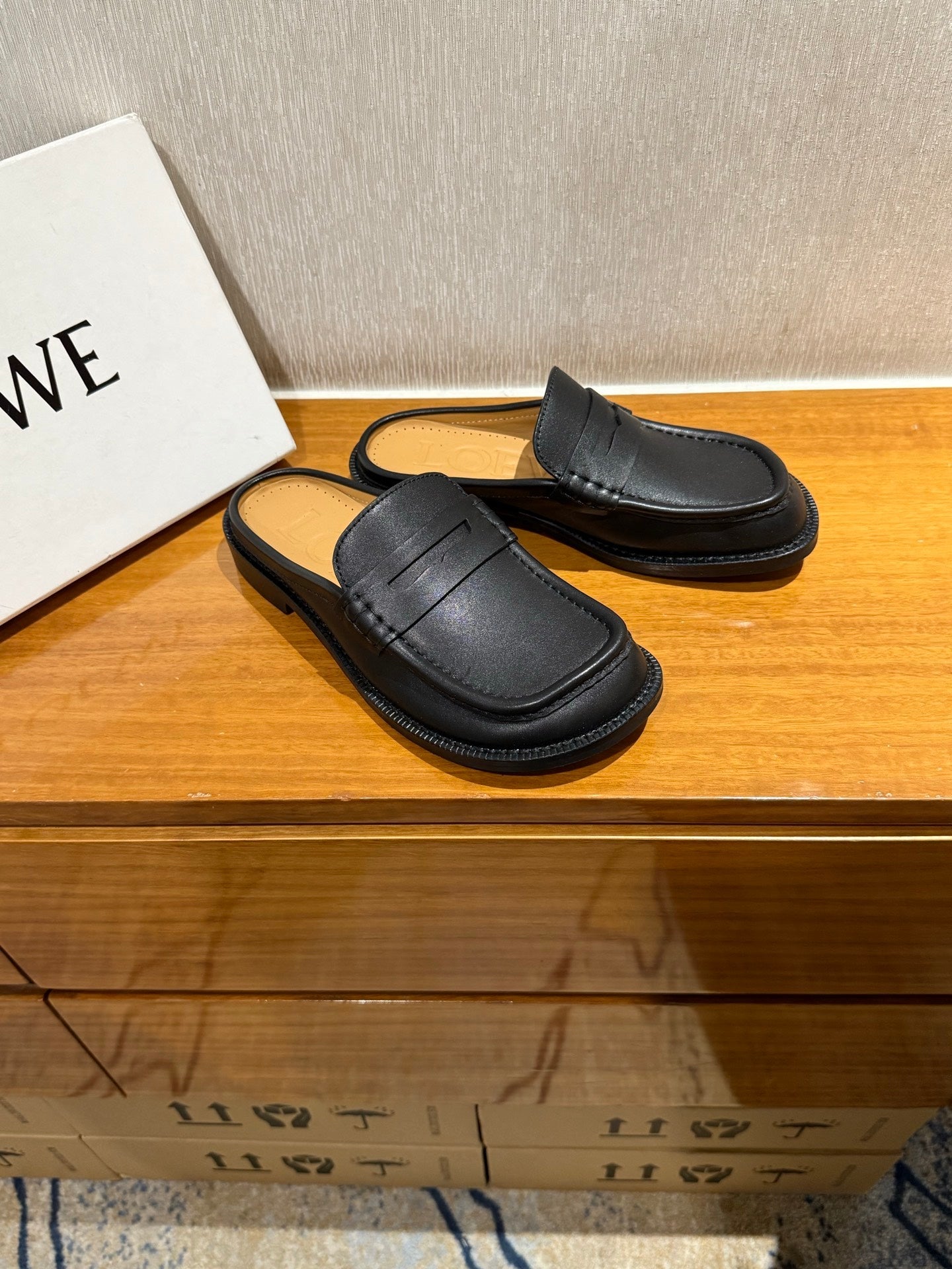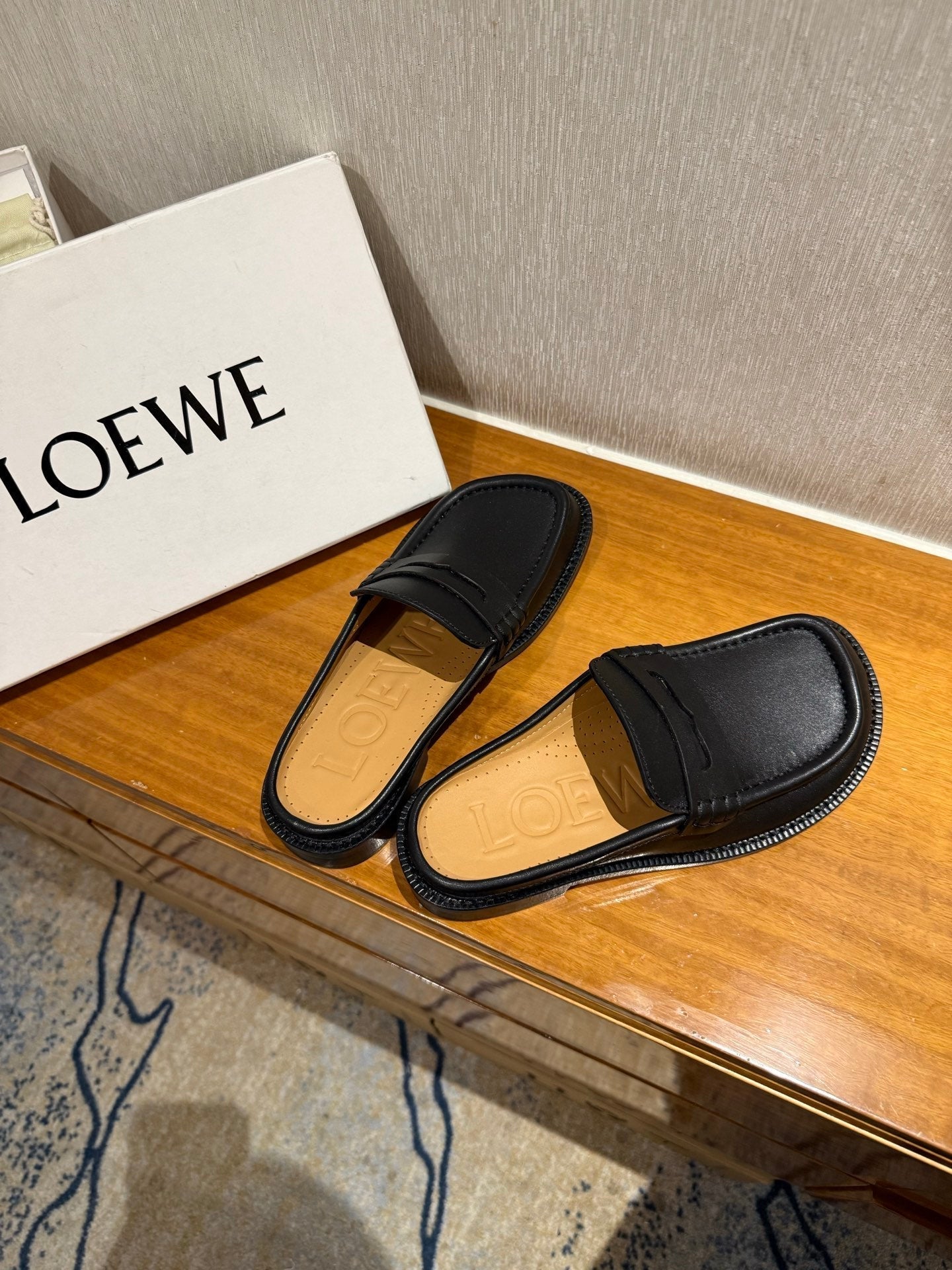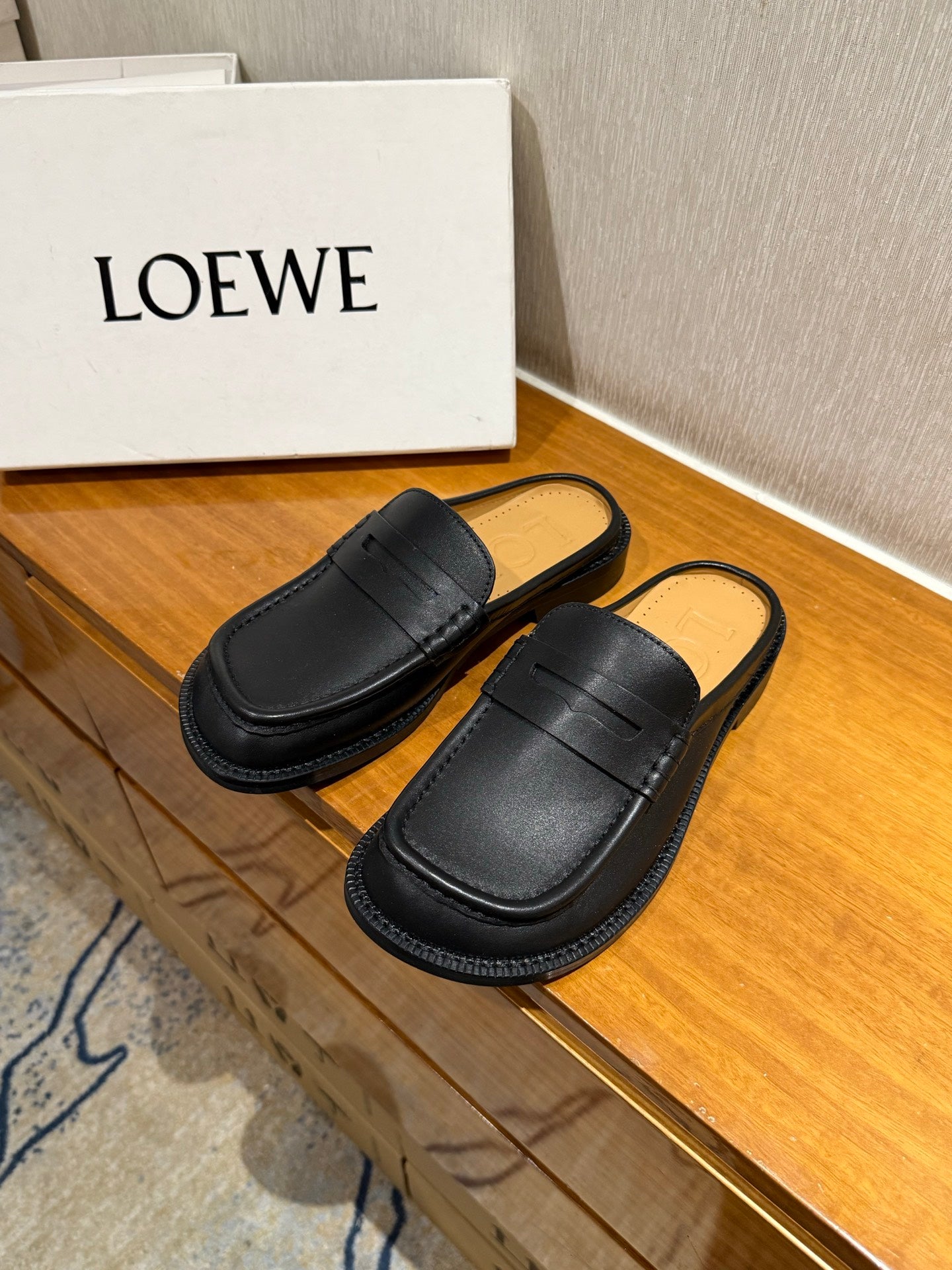 Loewe 25 Petal Anagram Slides Black Cowhide