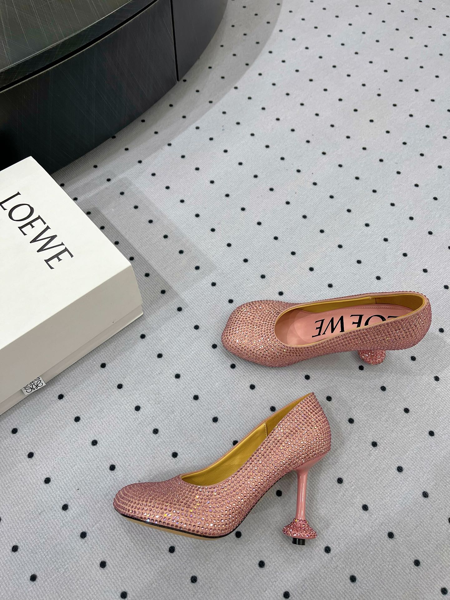 Loew pump 100 in suede and allover rhinestones pink