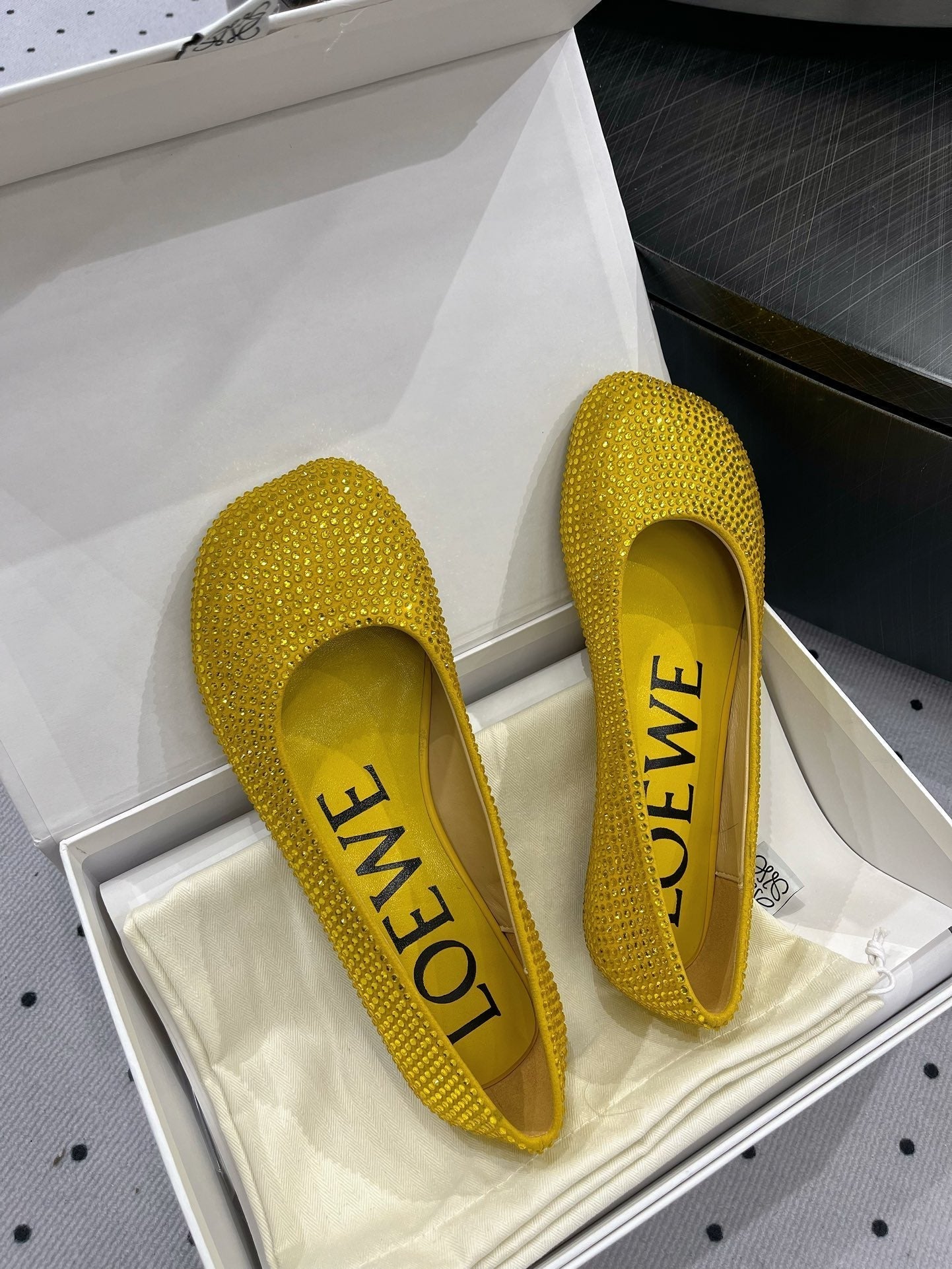 Toy ballerina in suede and allover rhinestones yellow