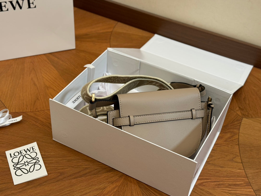 LOE MINI 18 GATE DUAL BAG IN TAN SOFT CALFSKIN AND JACQUARD