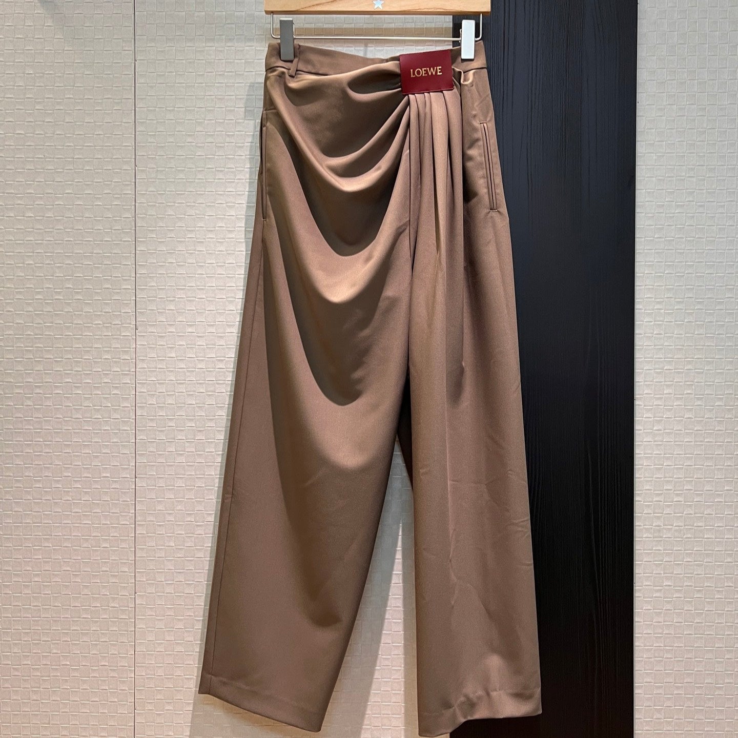 Loewe Pleated Wide Leg Pants Brown Cotton