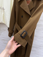 LP 25 Tie-Waist Slim Lapel Long Trench Coat Brown Cotton 305540