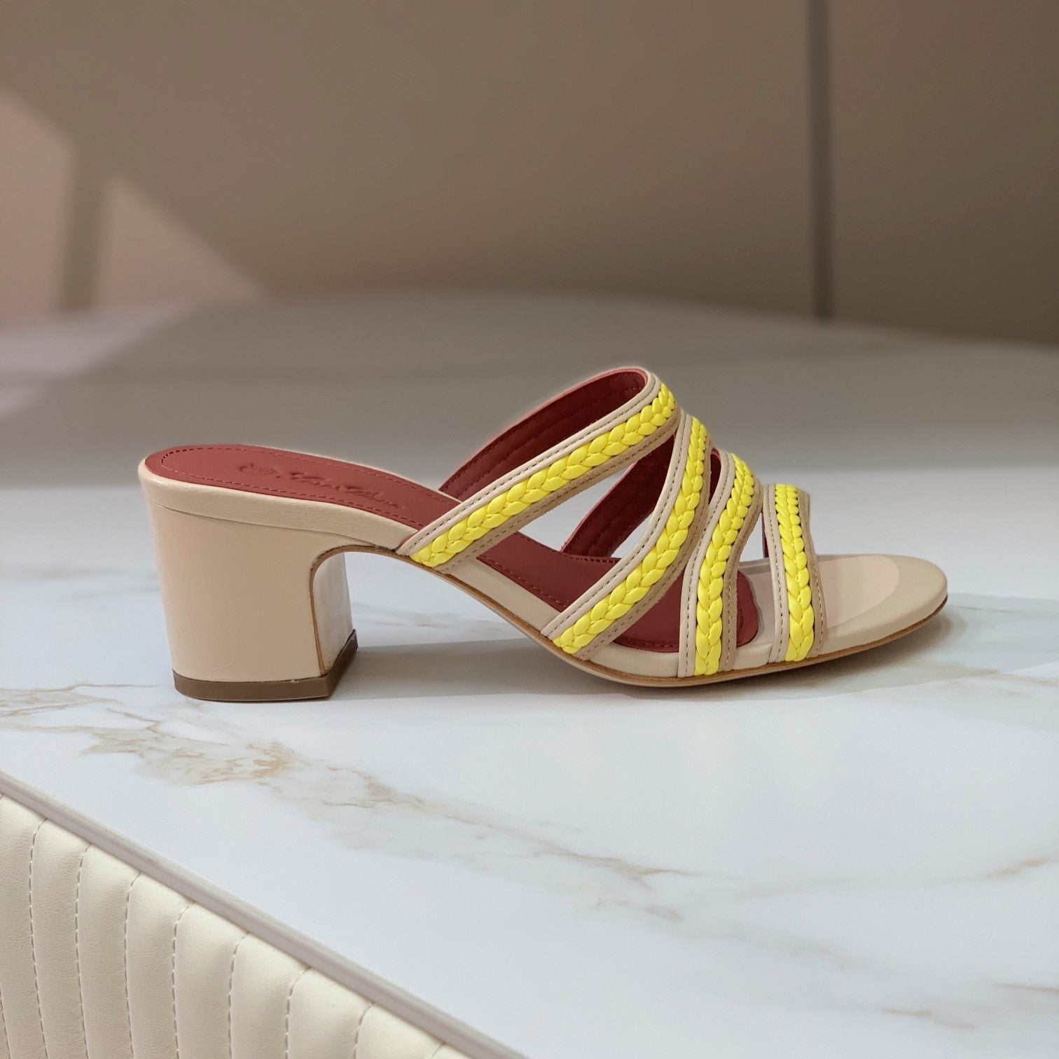 High Hee 60 Sprightly Charms Mule Sandal Beige Yellow Brown Calfskin