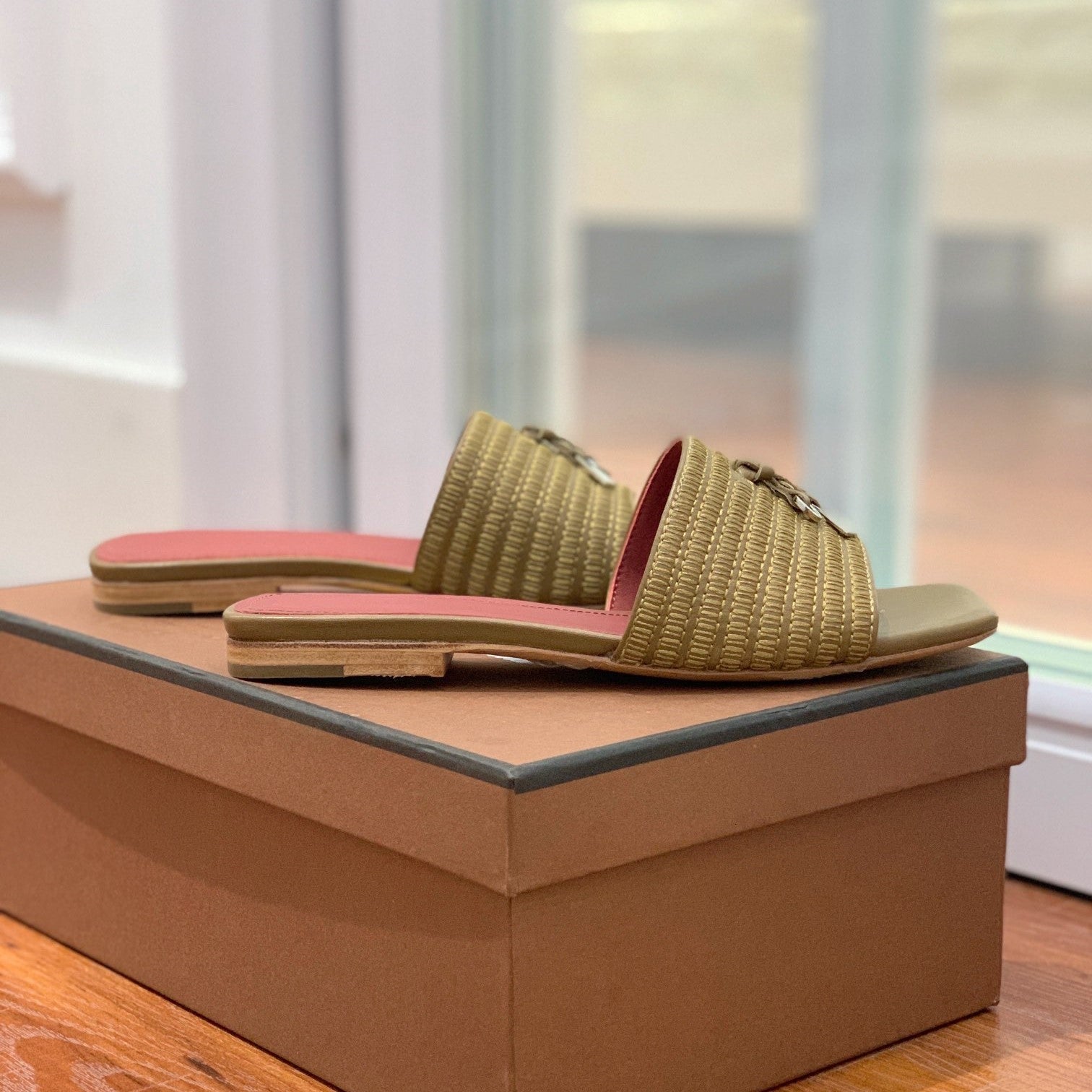 Quare Toe Sprightly Charms Mule Olive Marron Calfskin