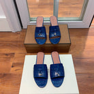 Summer Charms Sandals Mule Blue Crocodile Pattern Pink Lambskin