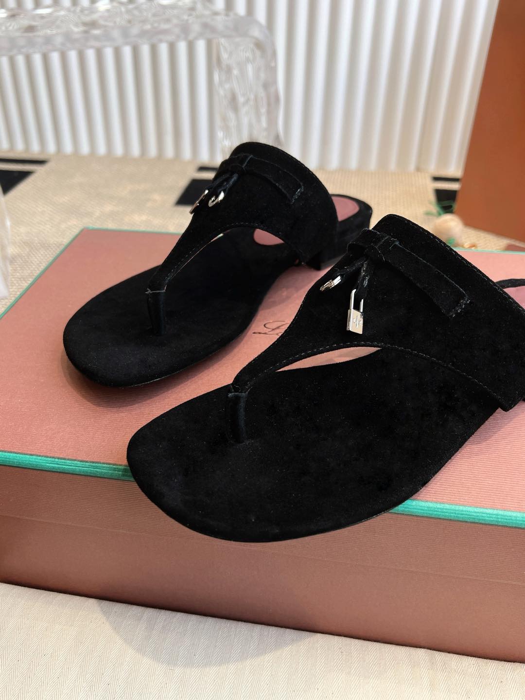 LP 25C Thong Slide Sandal Black Suede 208112