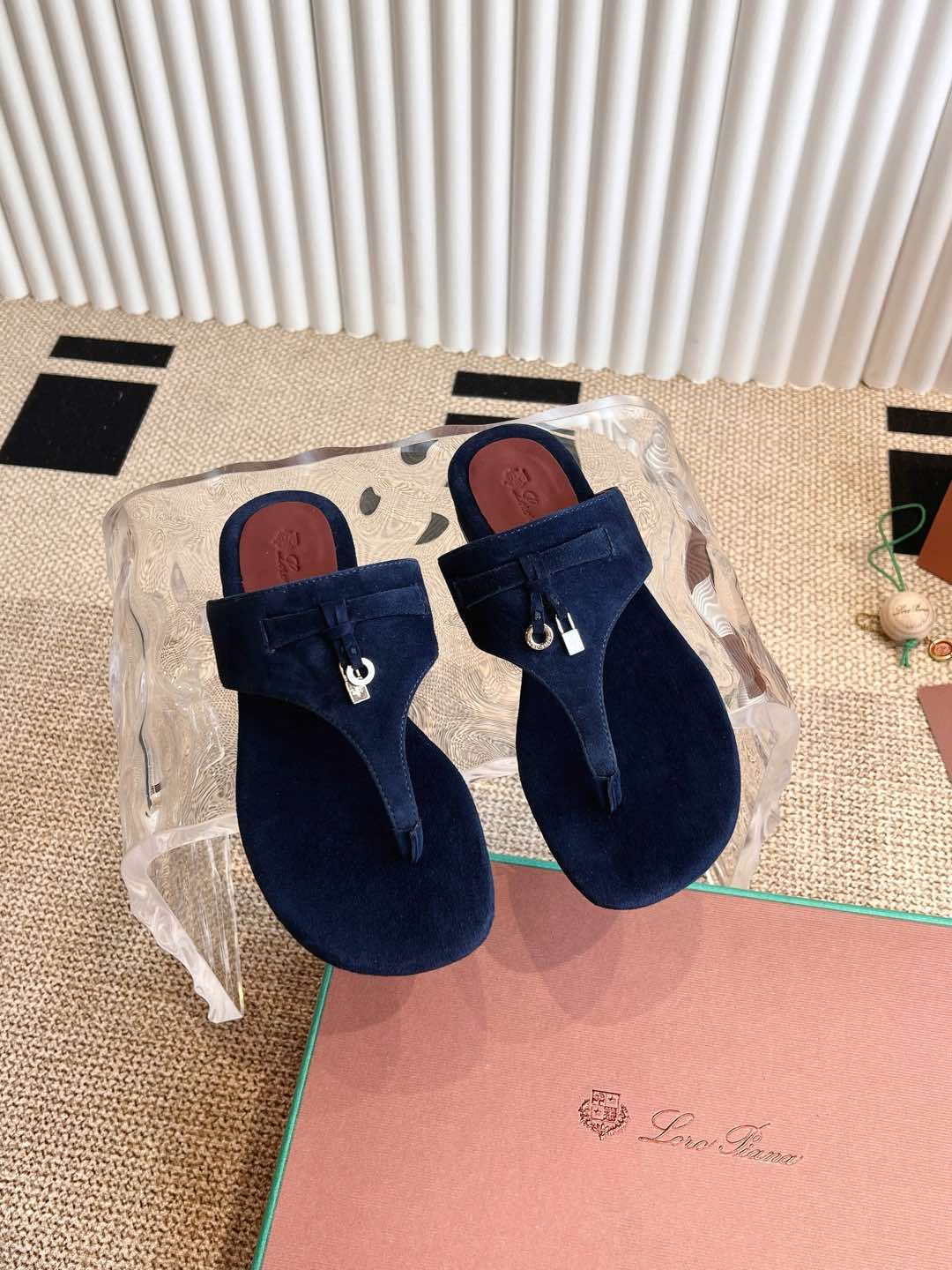 LP 25C Thong Slide Sandal Navy Blue Suede 208114