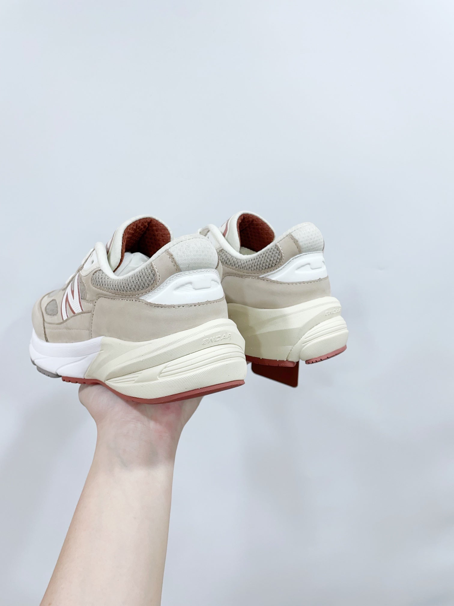 LP x NB 990v6 Sneaker 45mm white grey dark pink calfskin and mesh fabric