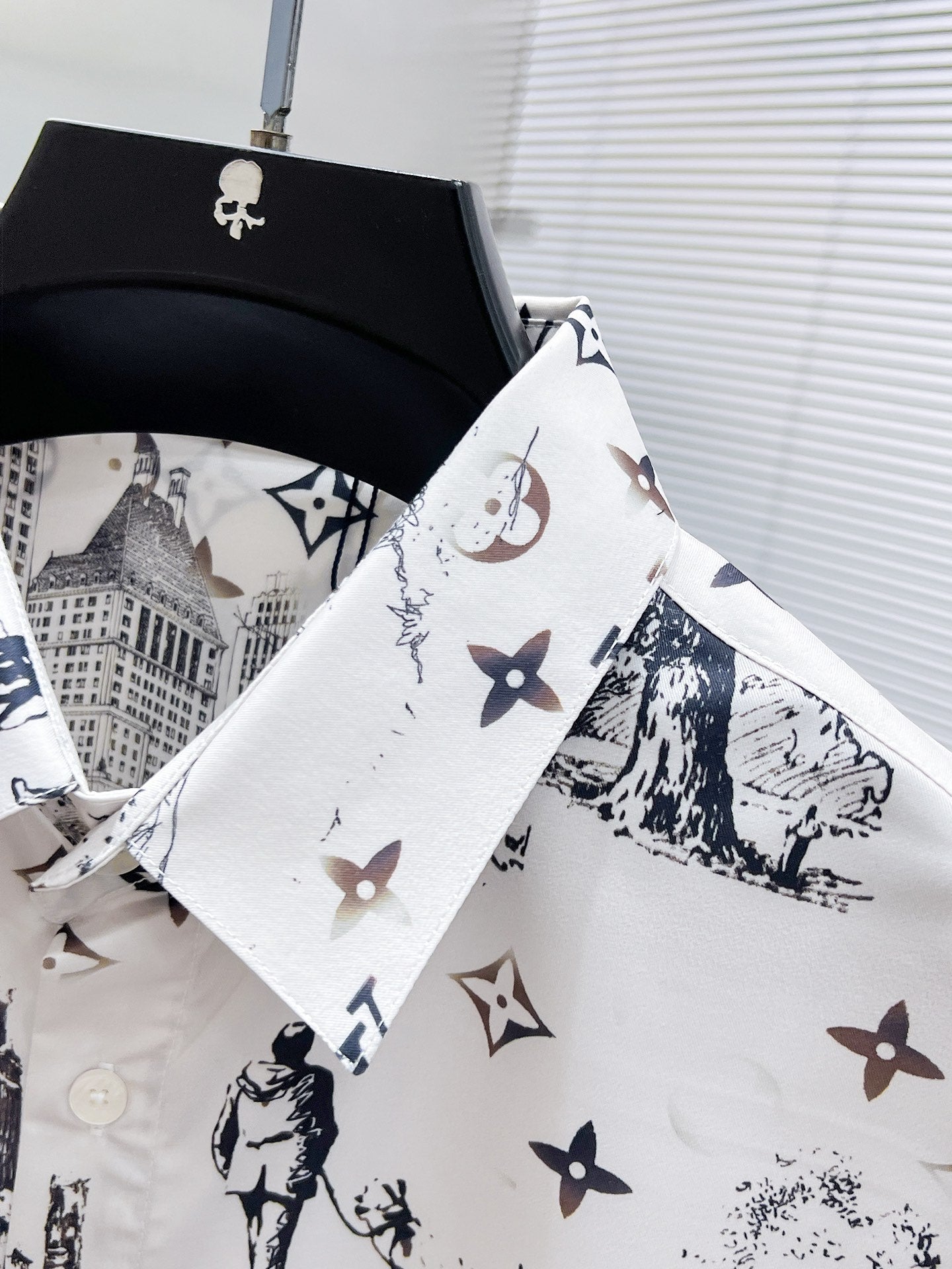 LV LONG-SLEEVED SHIRT WHITE COTTON ALLOVER MONOGRAM CITY WALK PRINT 238817