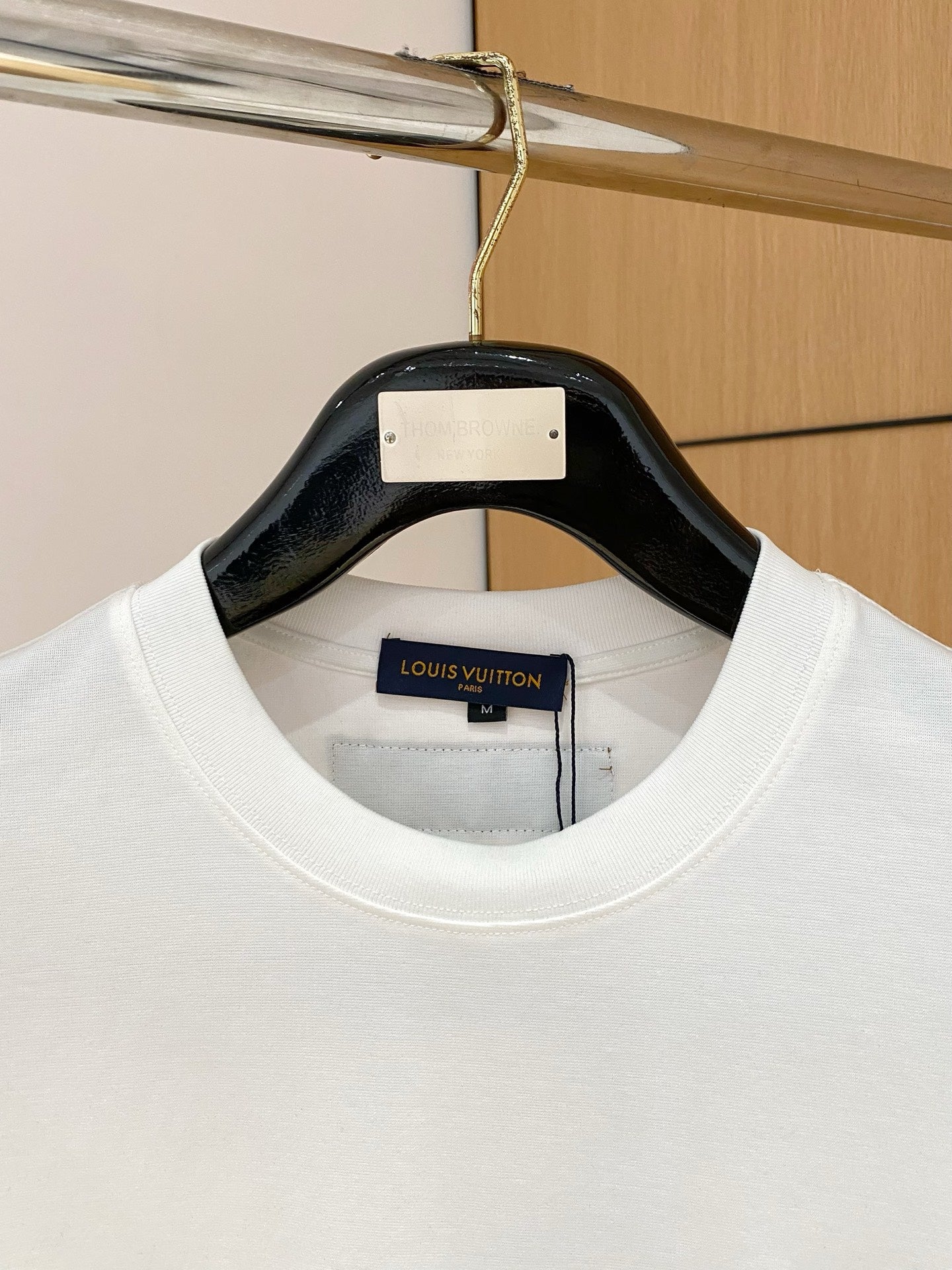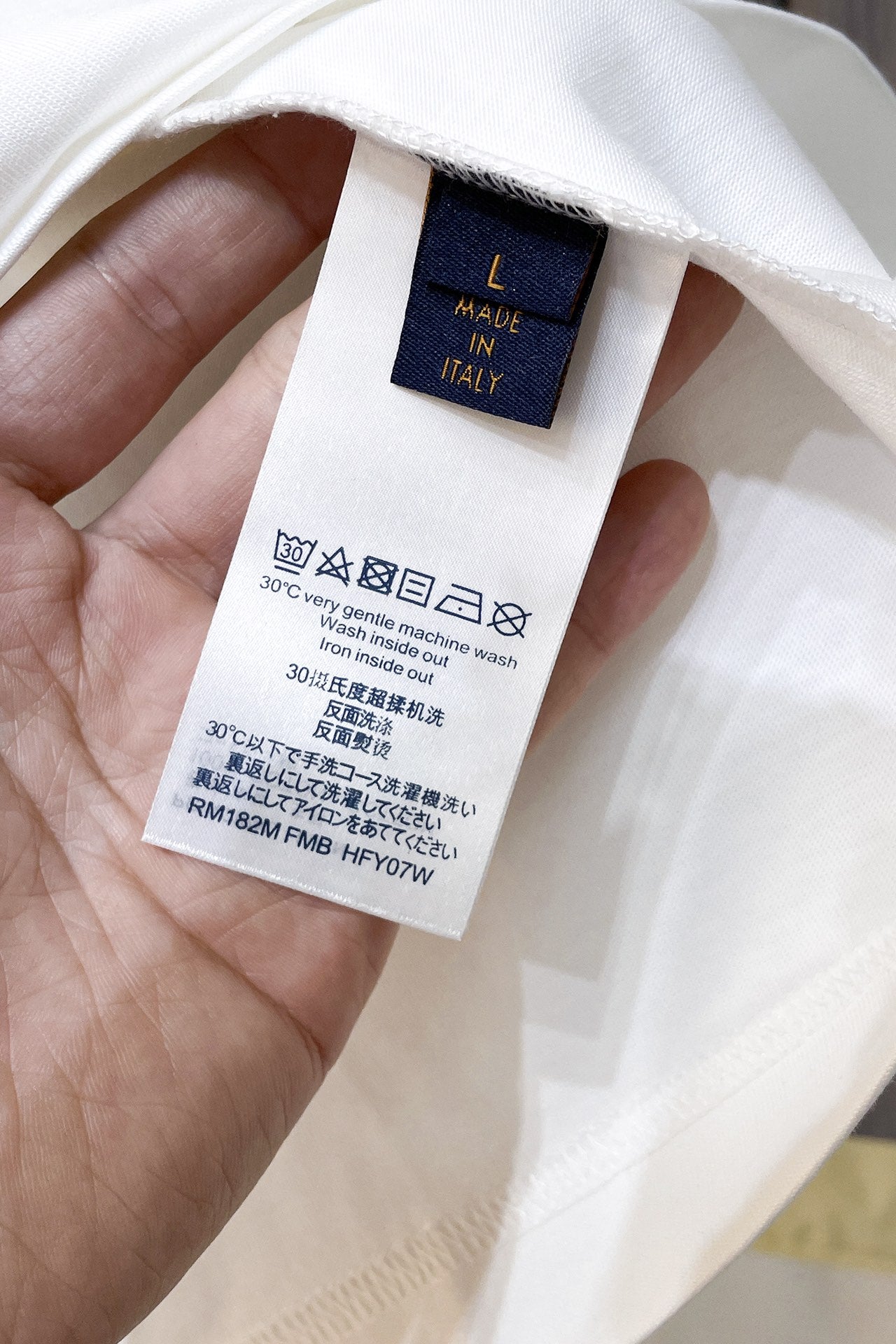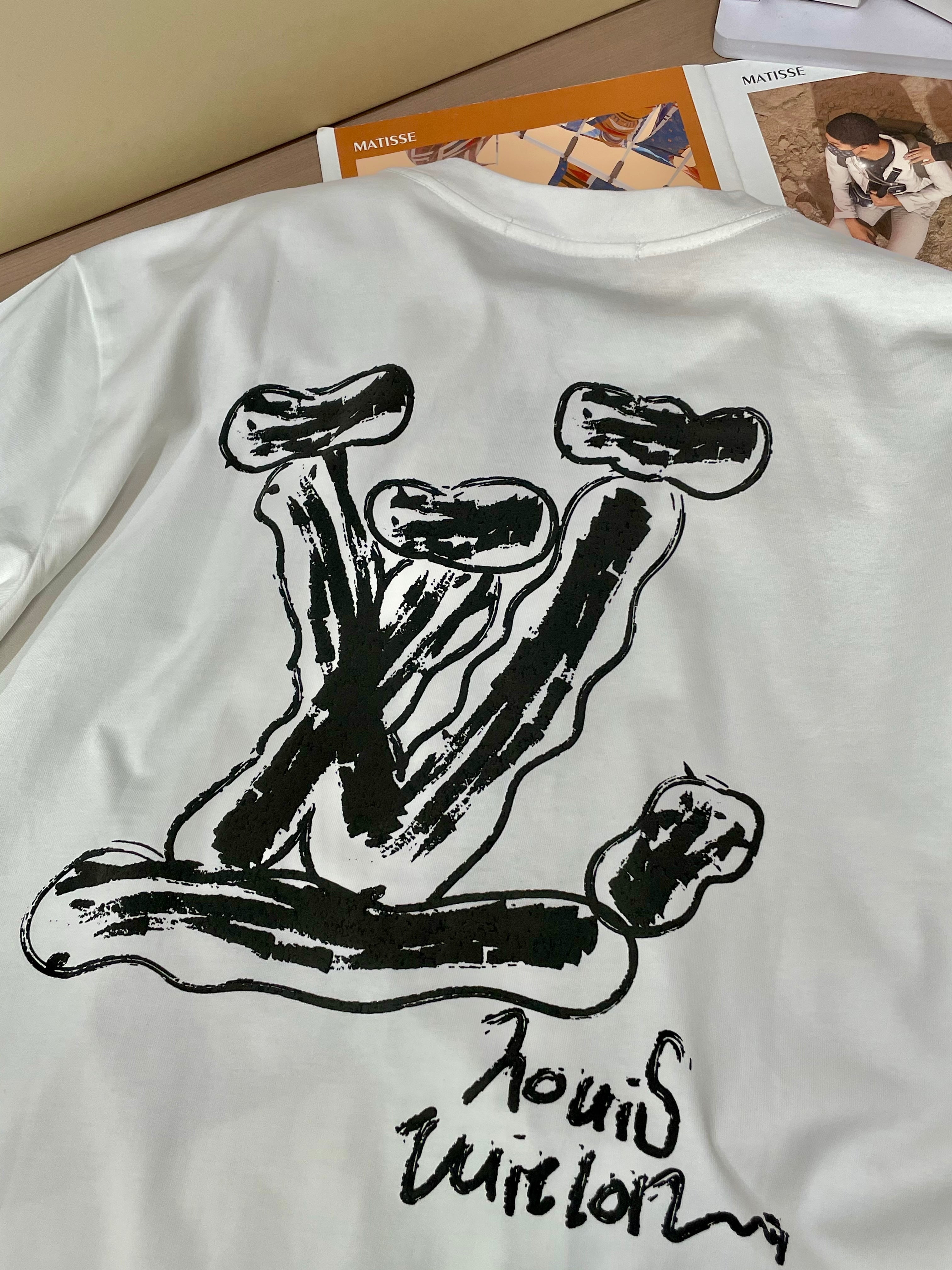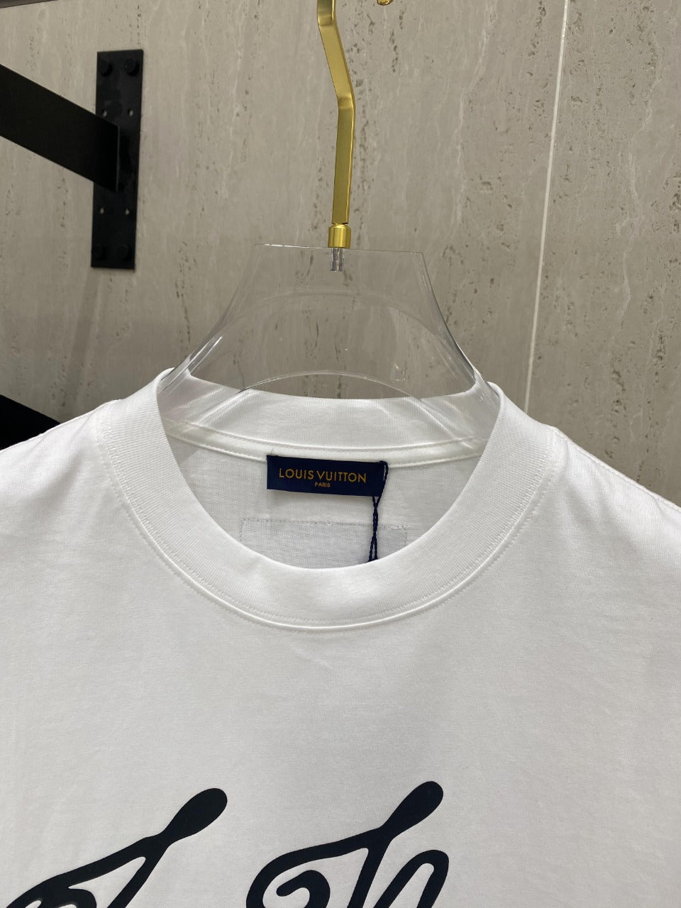 LV Pattern Logo Positioning Poster Badge Printed T-shirt White Cotton