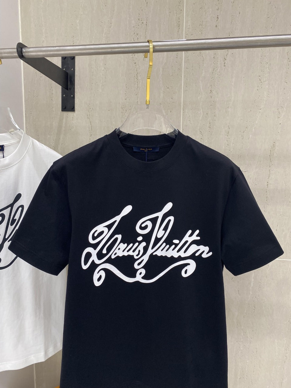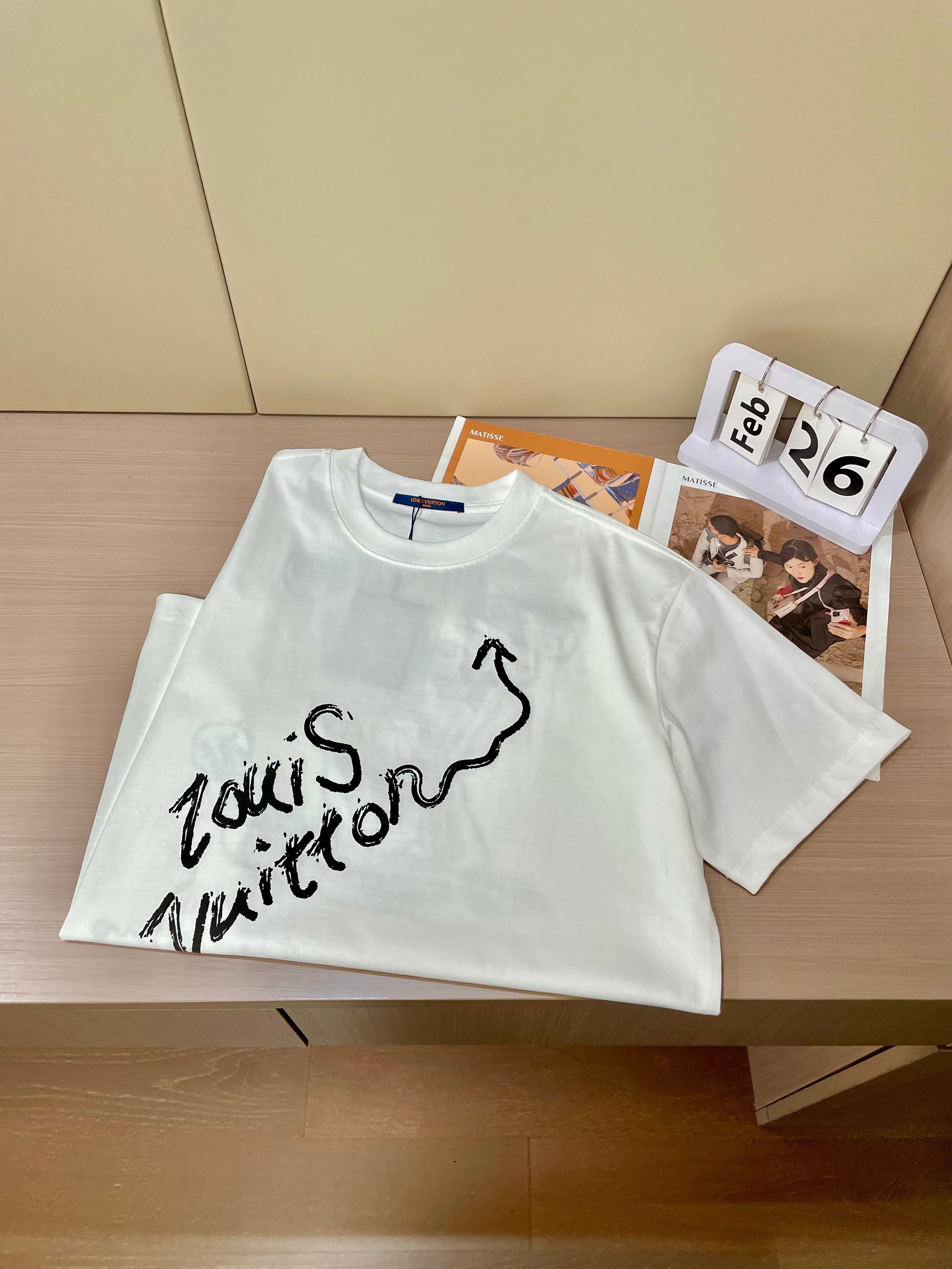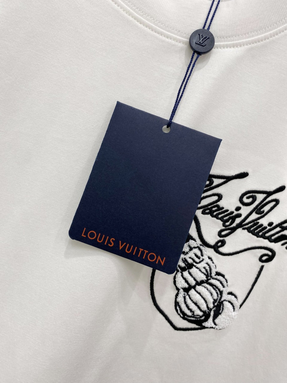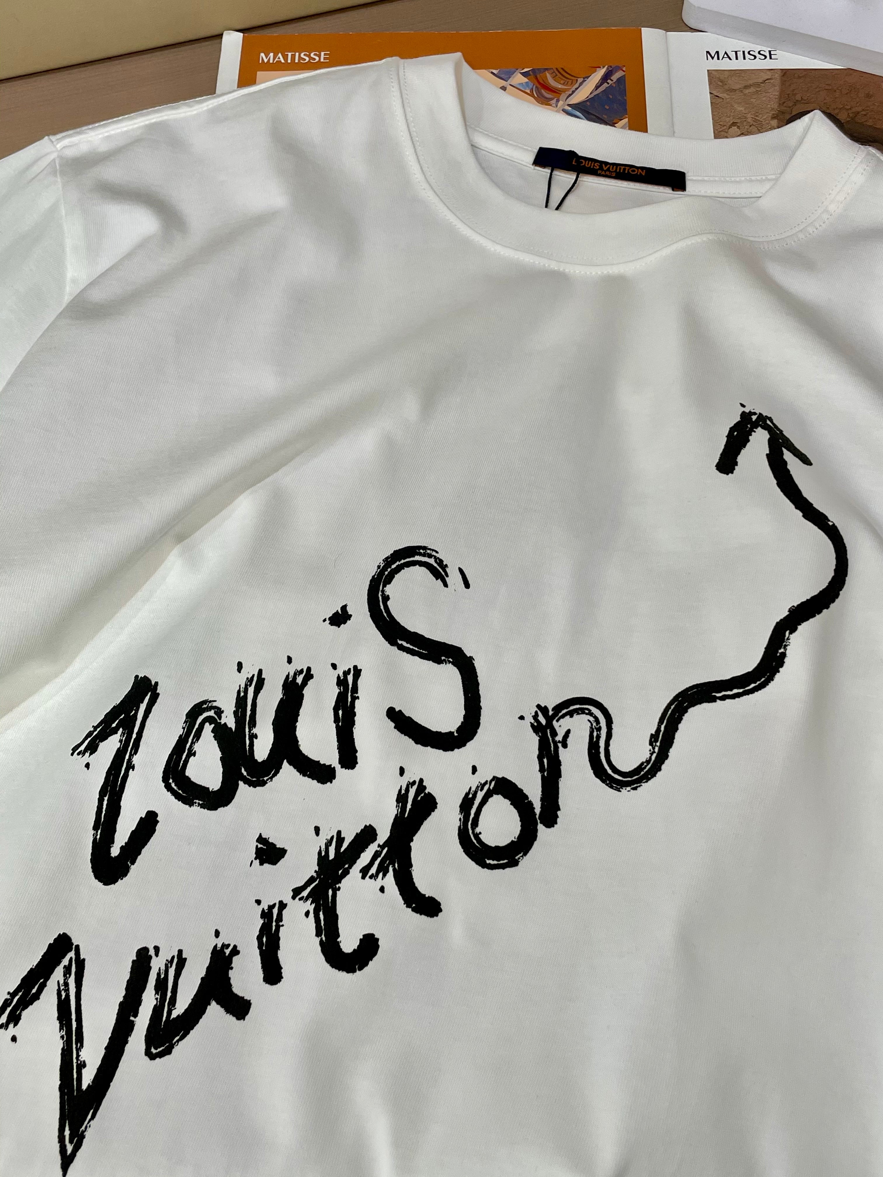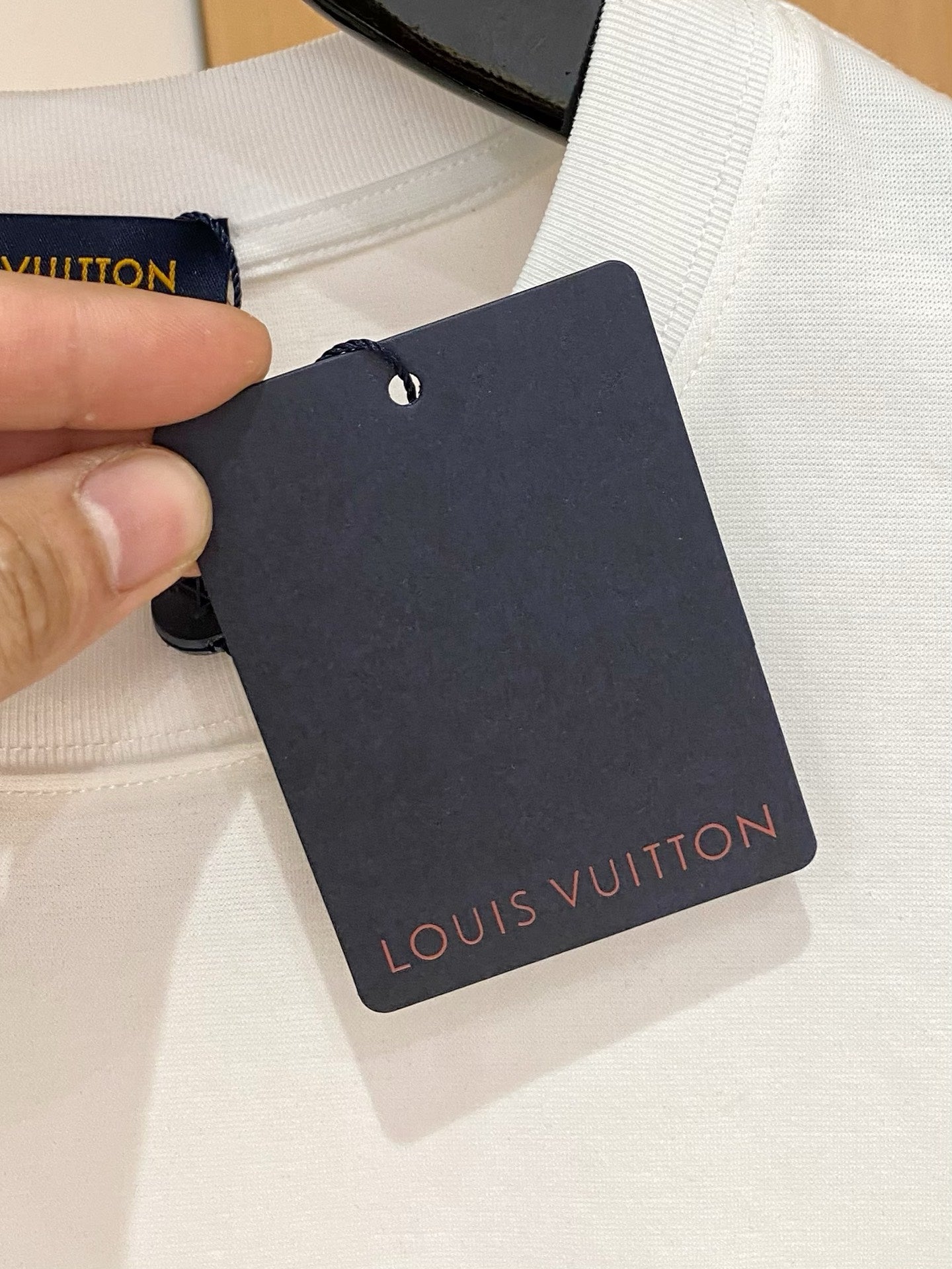 LV Pattern Logo Positioning Poster Badge Printed T-shirt White Cotton