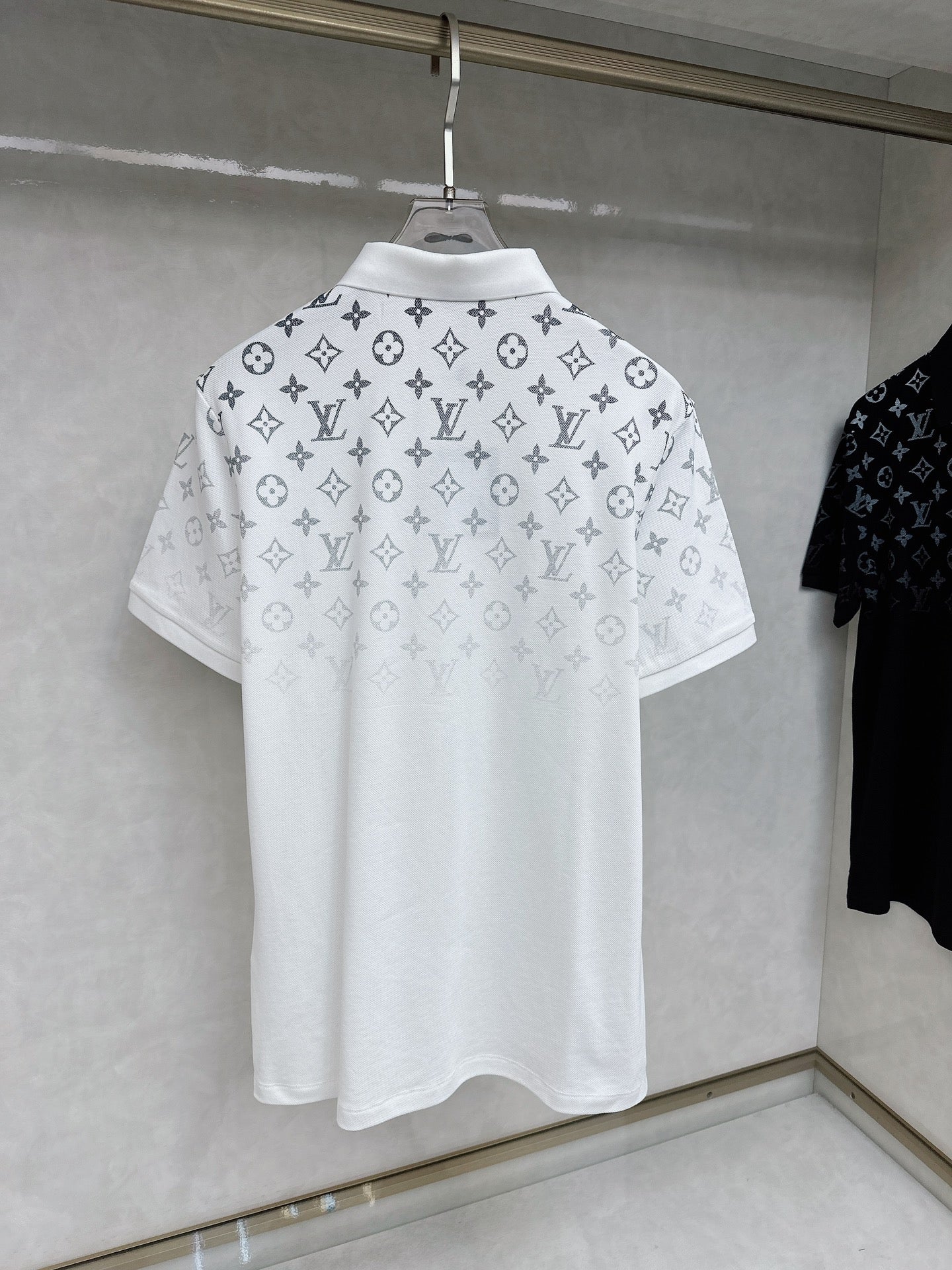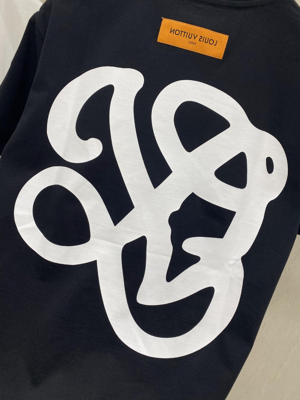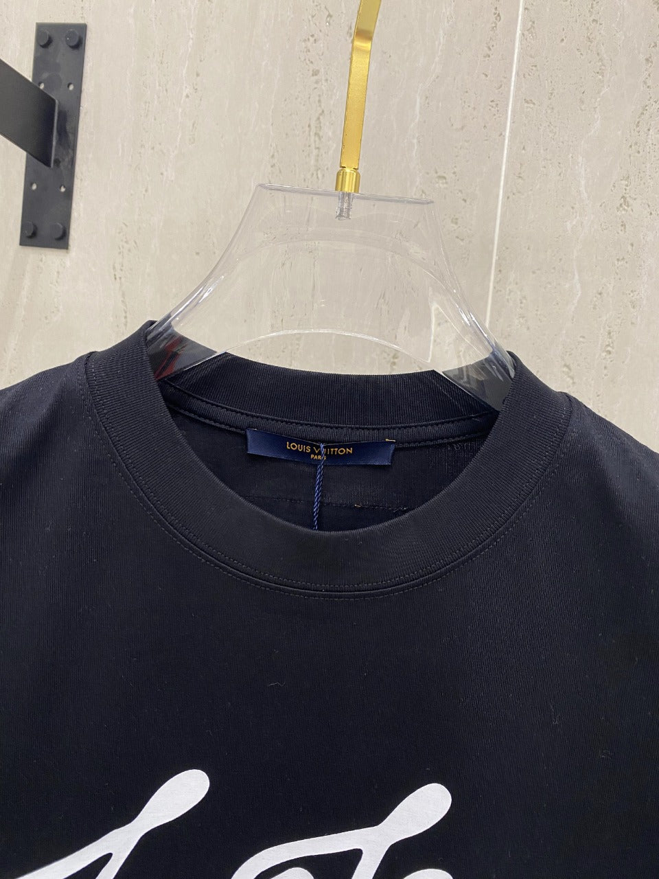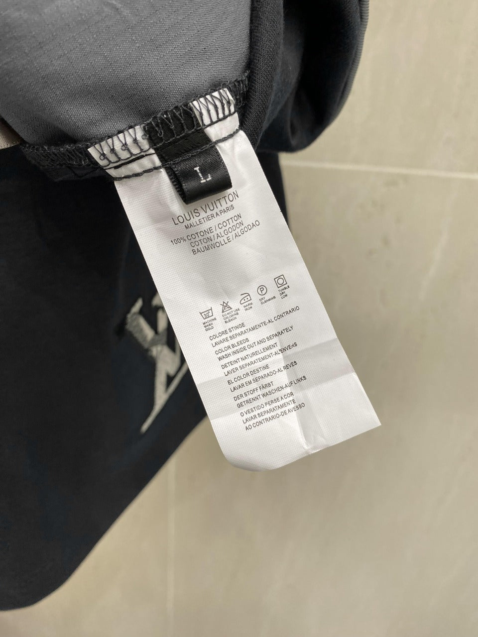 LV Pattern Logo Positioning Poster Badge Printed T-shirt White Cotton