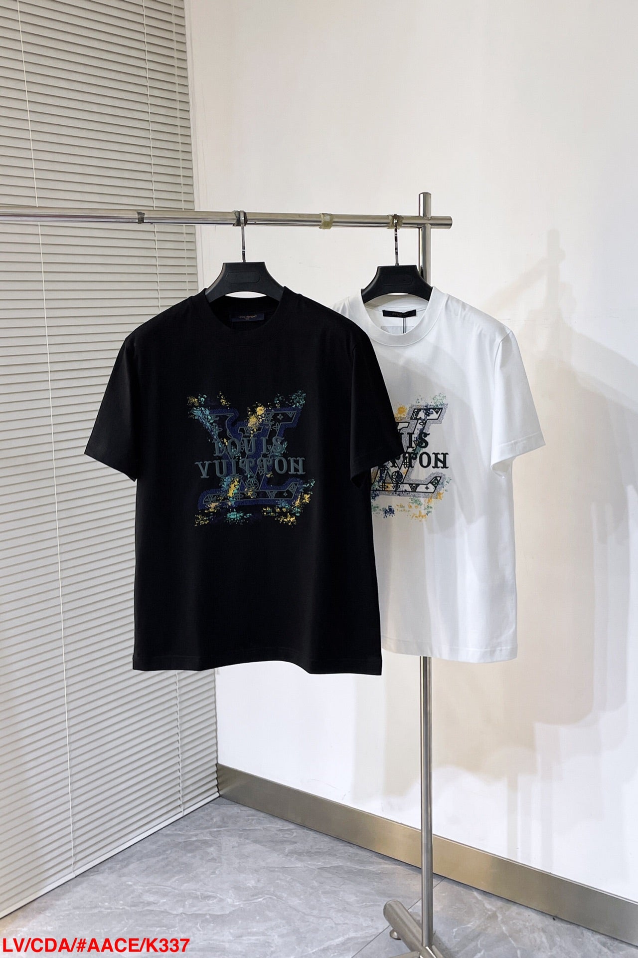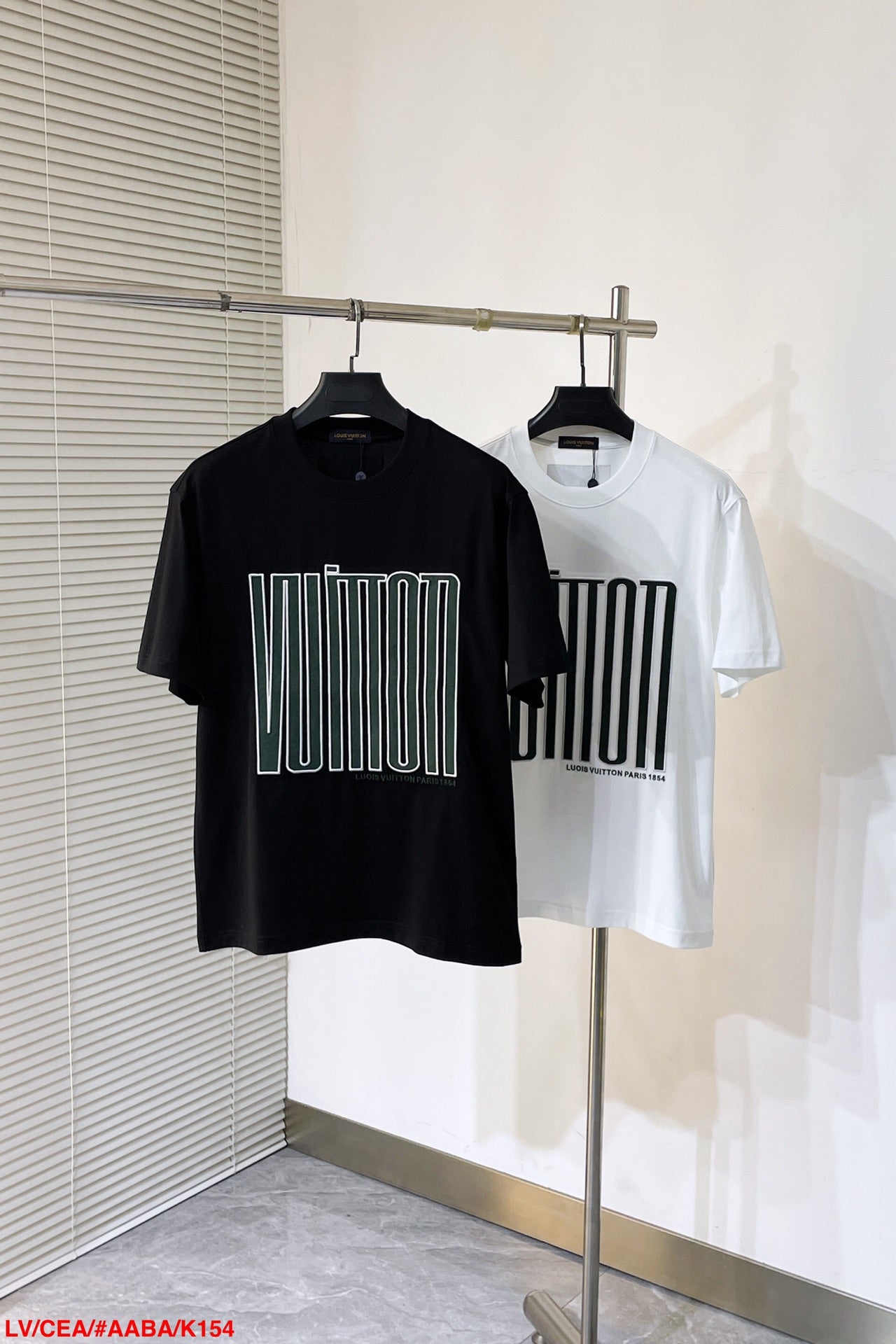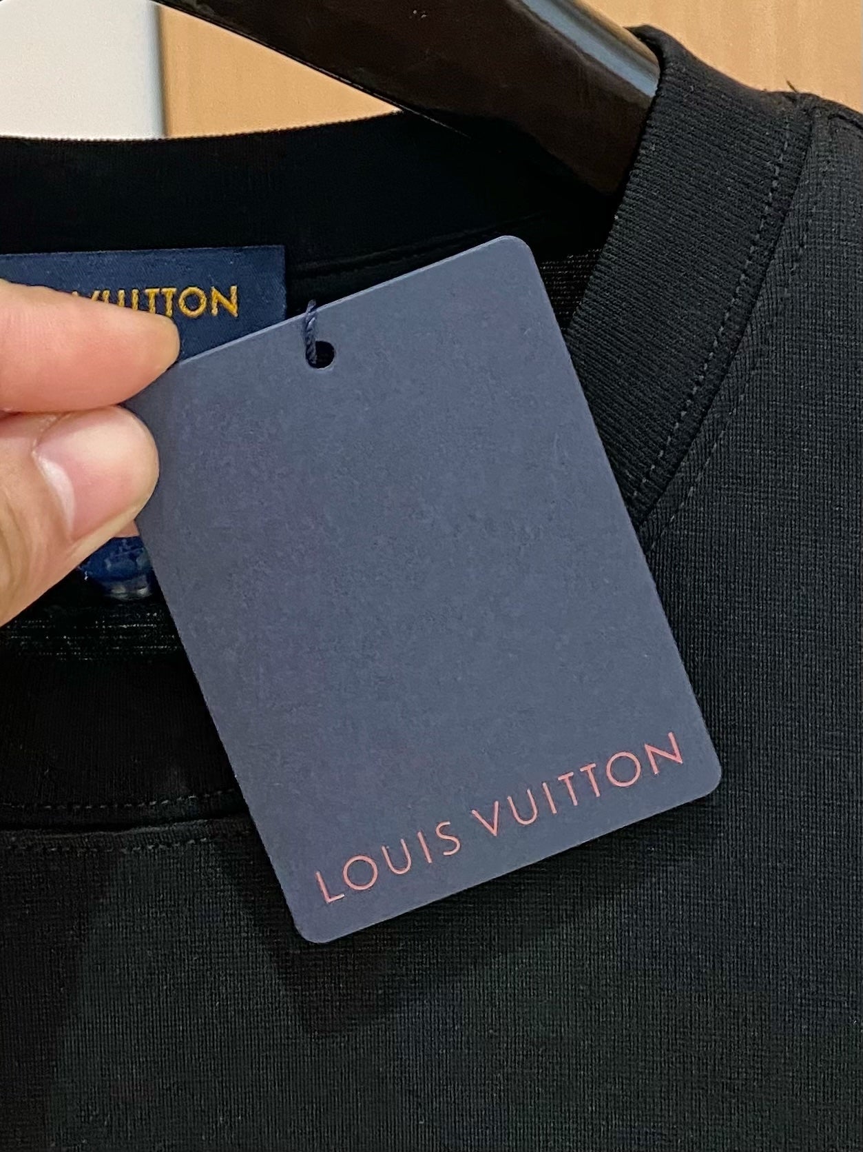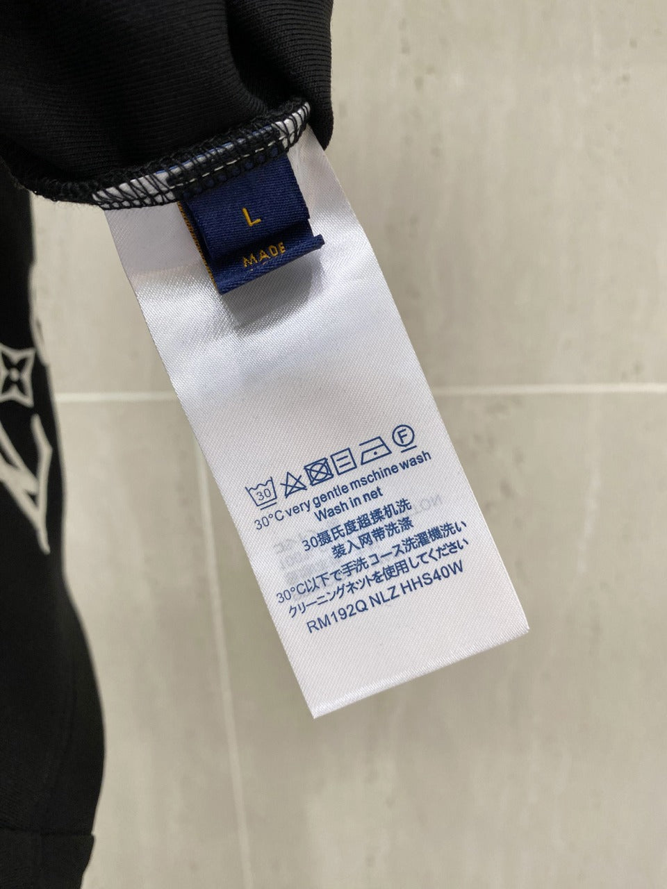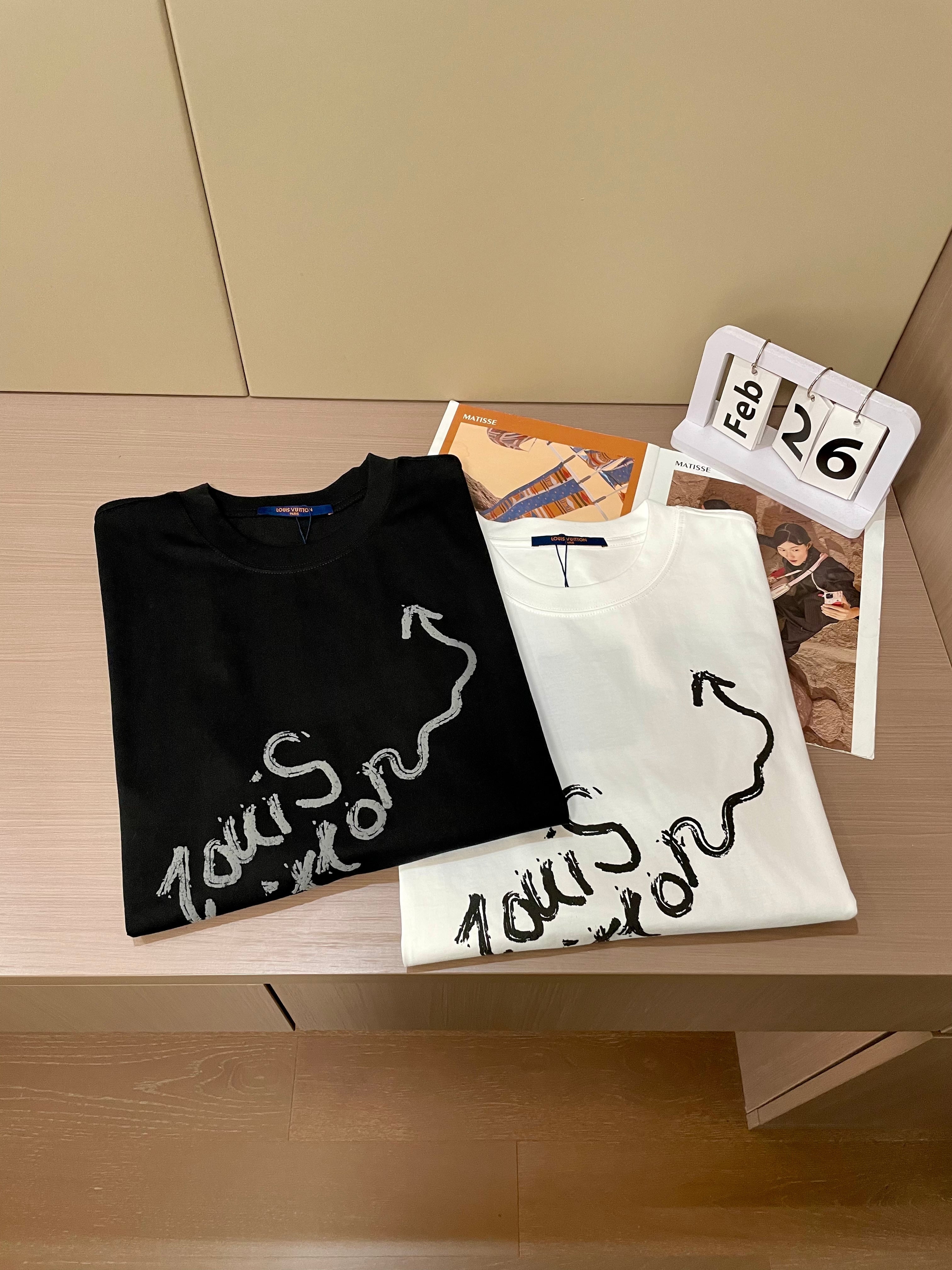 LV Pattern Logo Positioning Poster Badge Printed T-shirt White Cotton