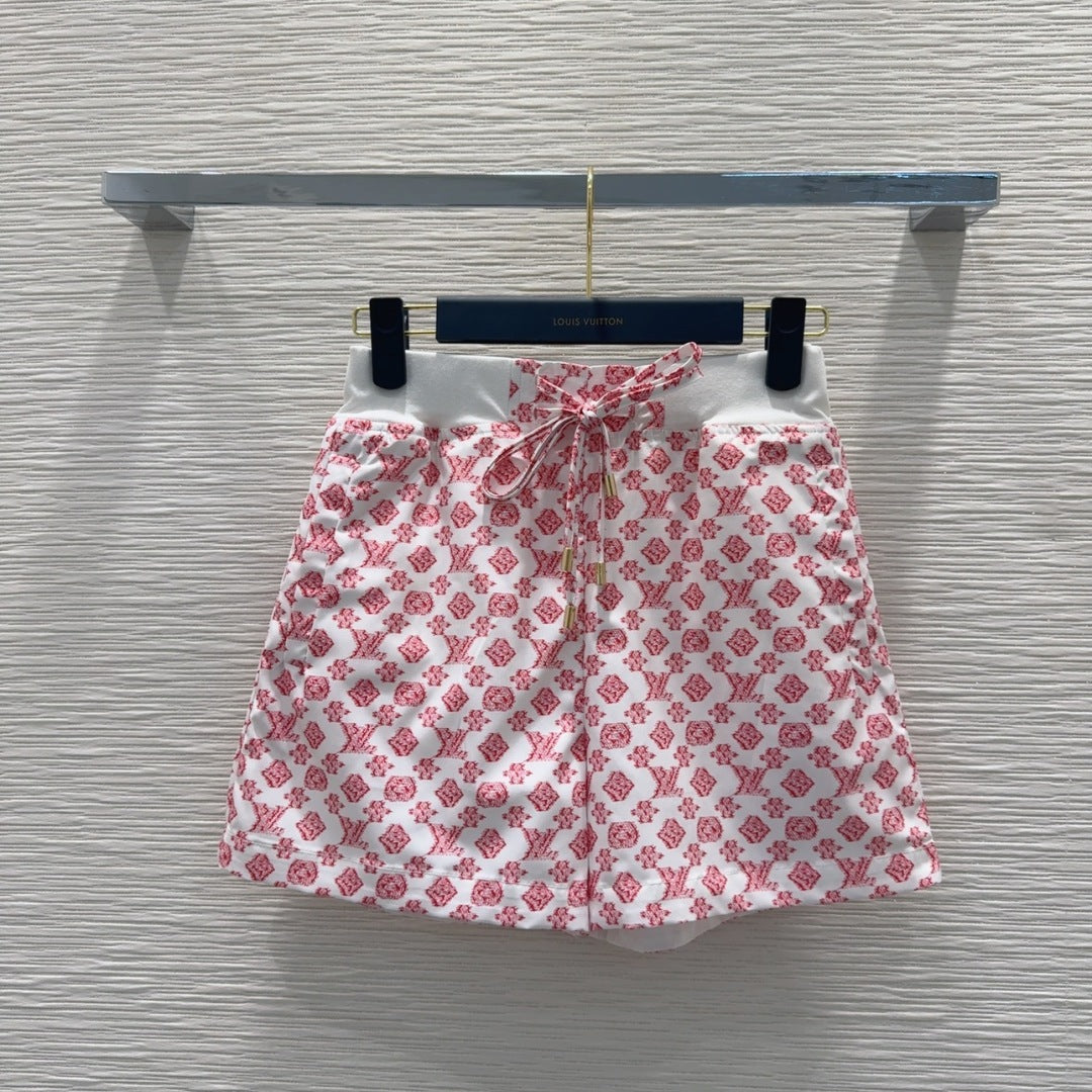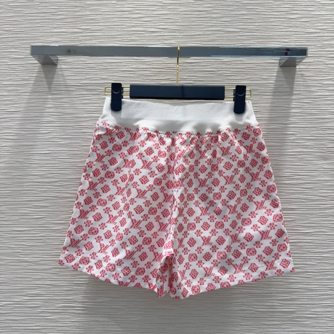 LV 25 Classic Flower Shorts Pink White Poliester