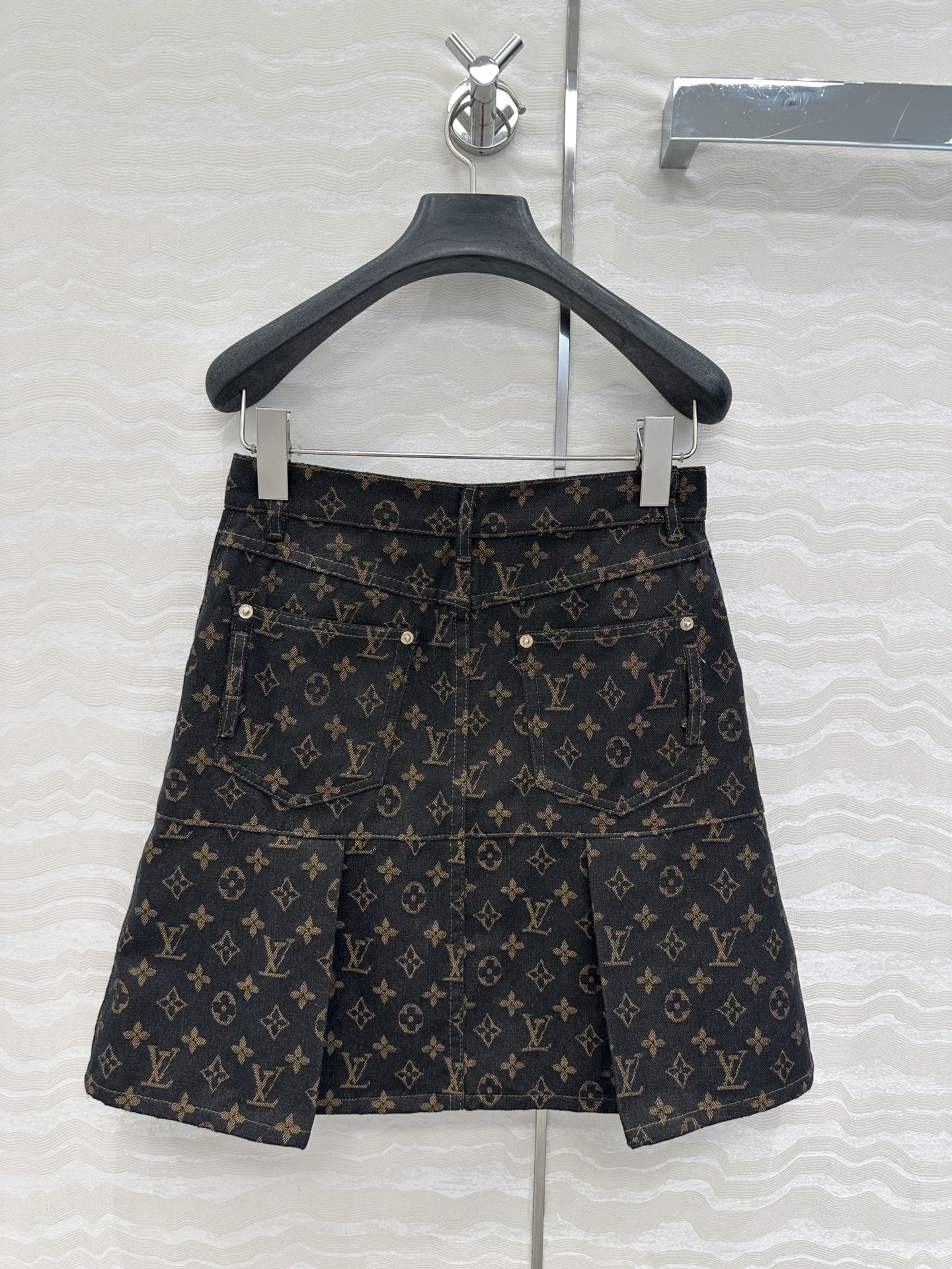 LV 25 Classic Logo Denim Skirt Black Cotton