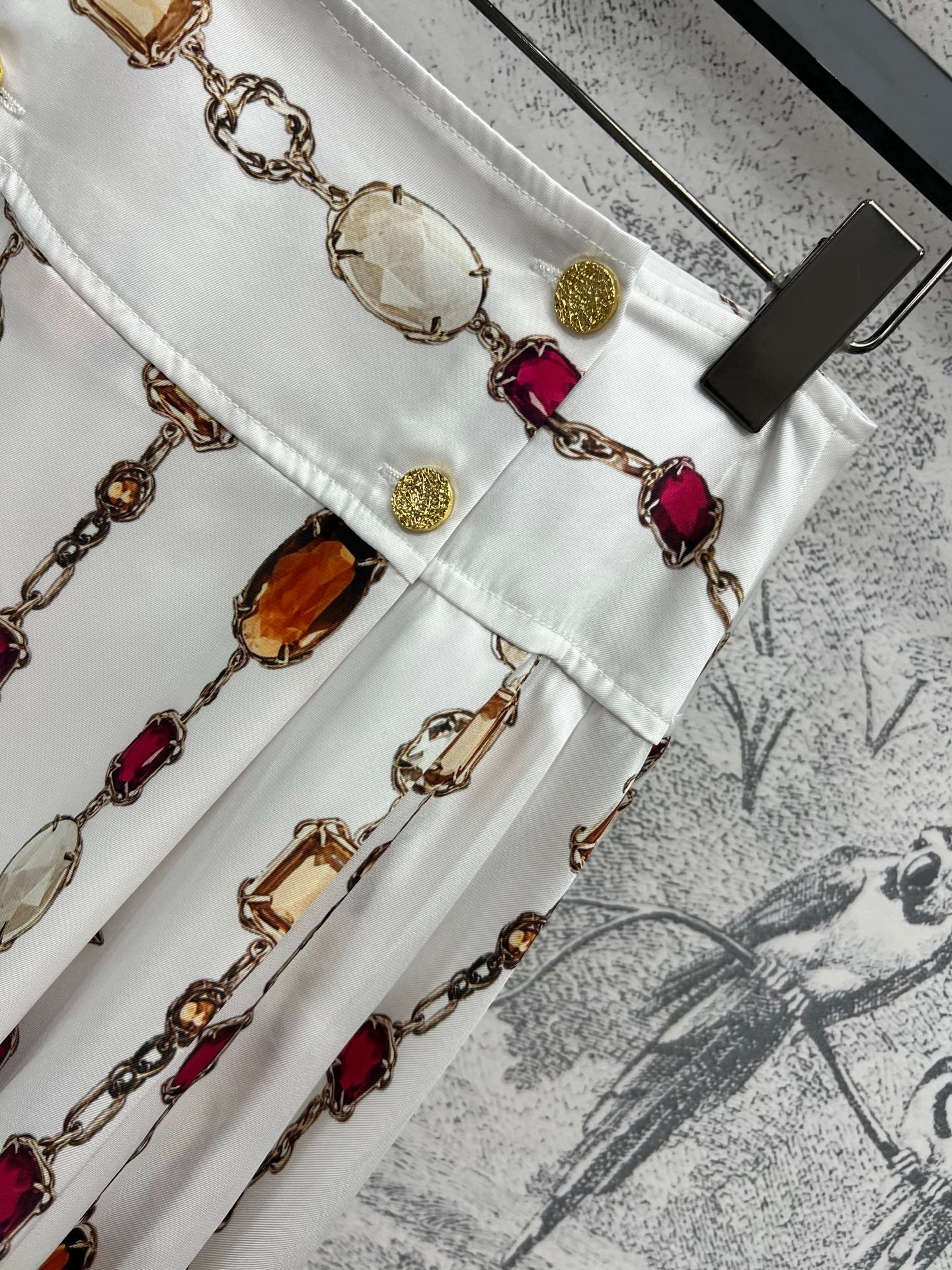 LV 25 Decorative Pattern Gemstone Chain Pleated Skirt White Poliester