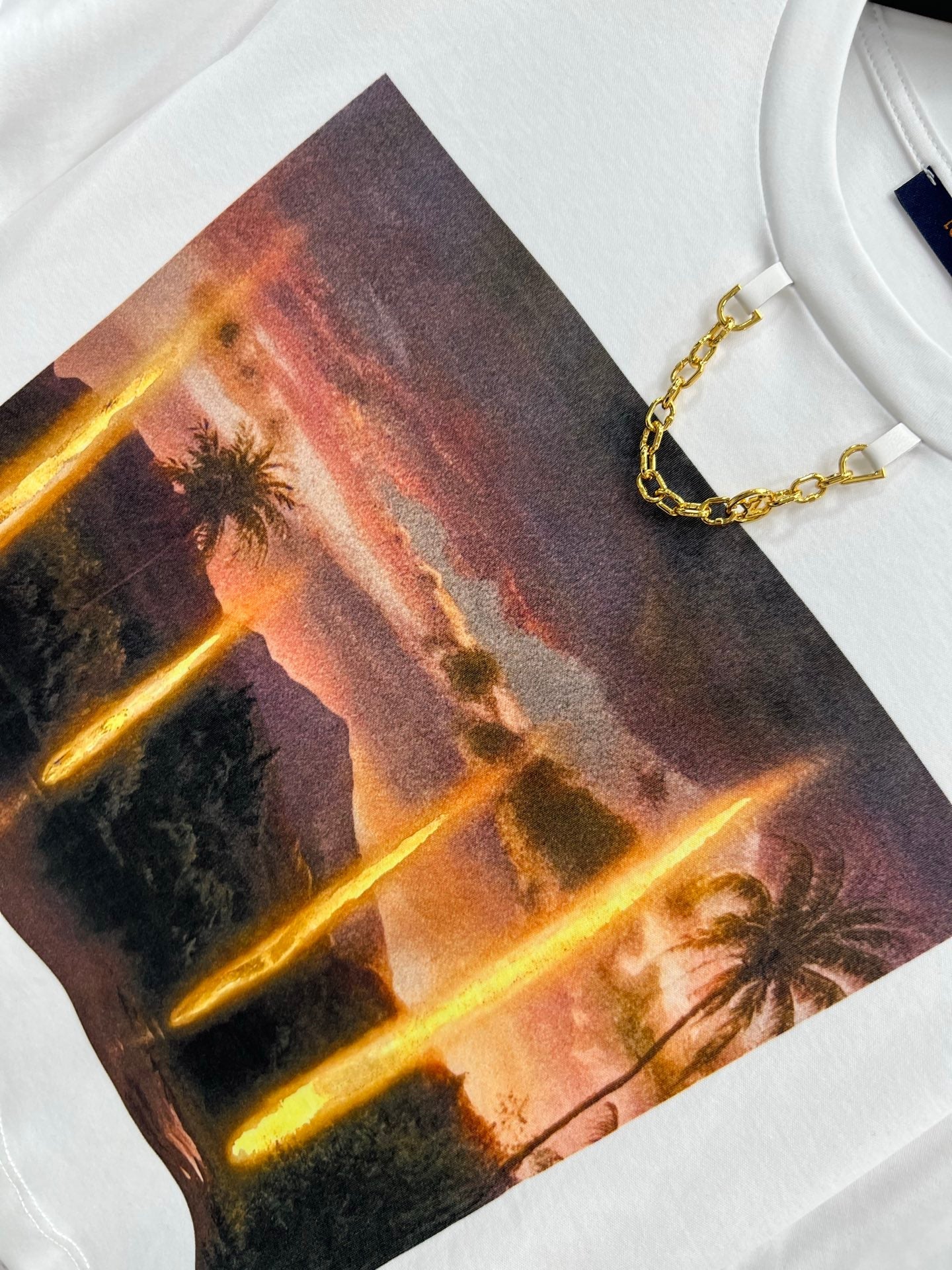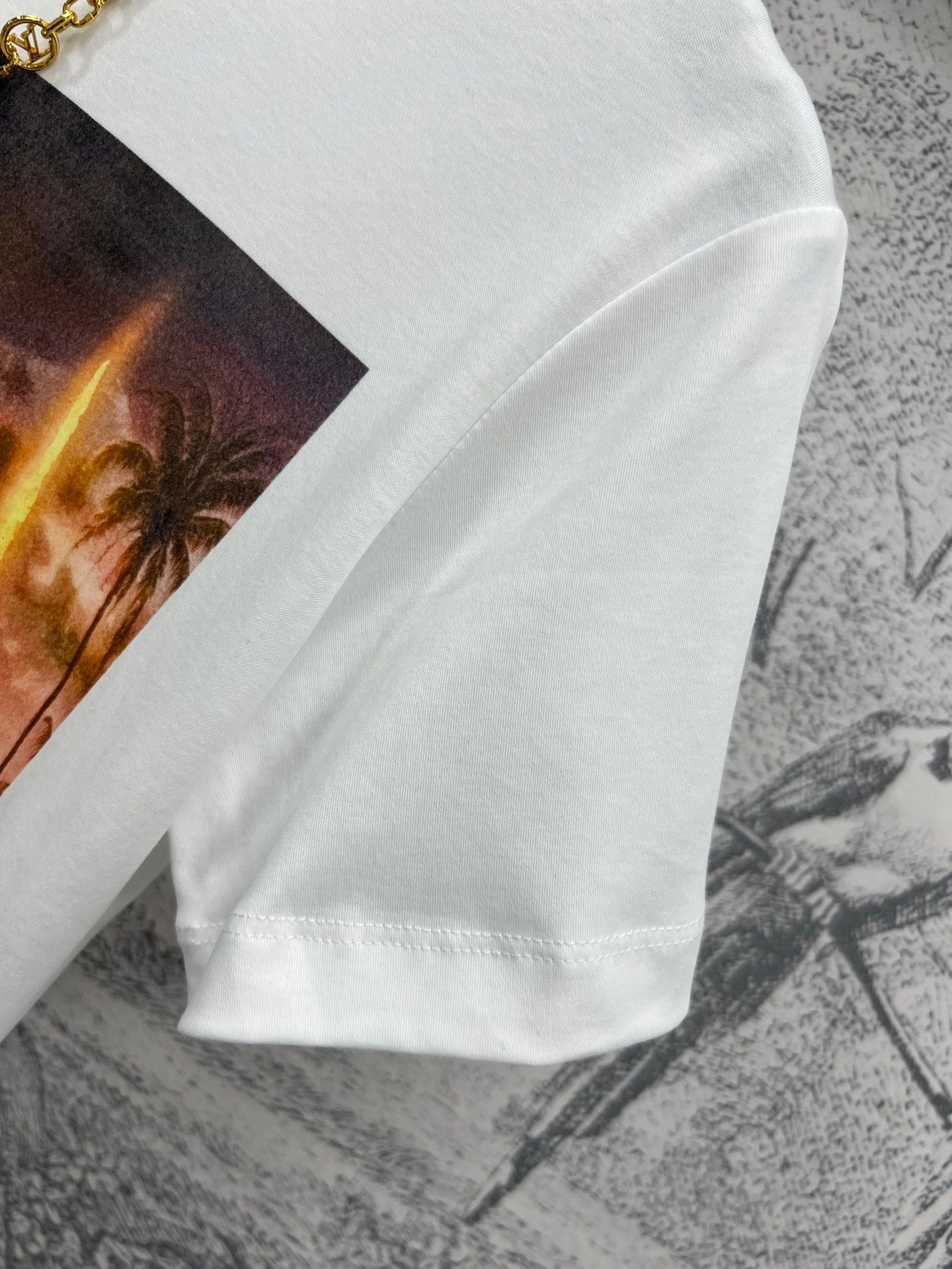 LV 25 Dusk Printed Patch Short-sleeved T-shirt White Cotton