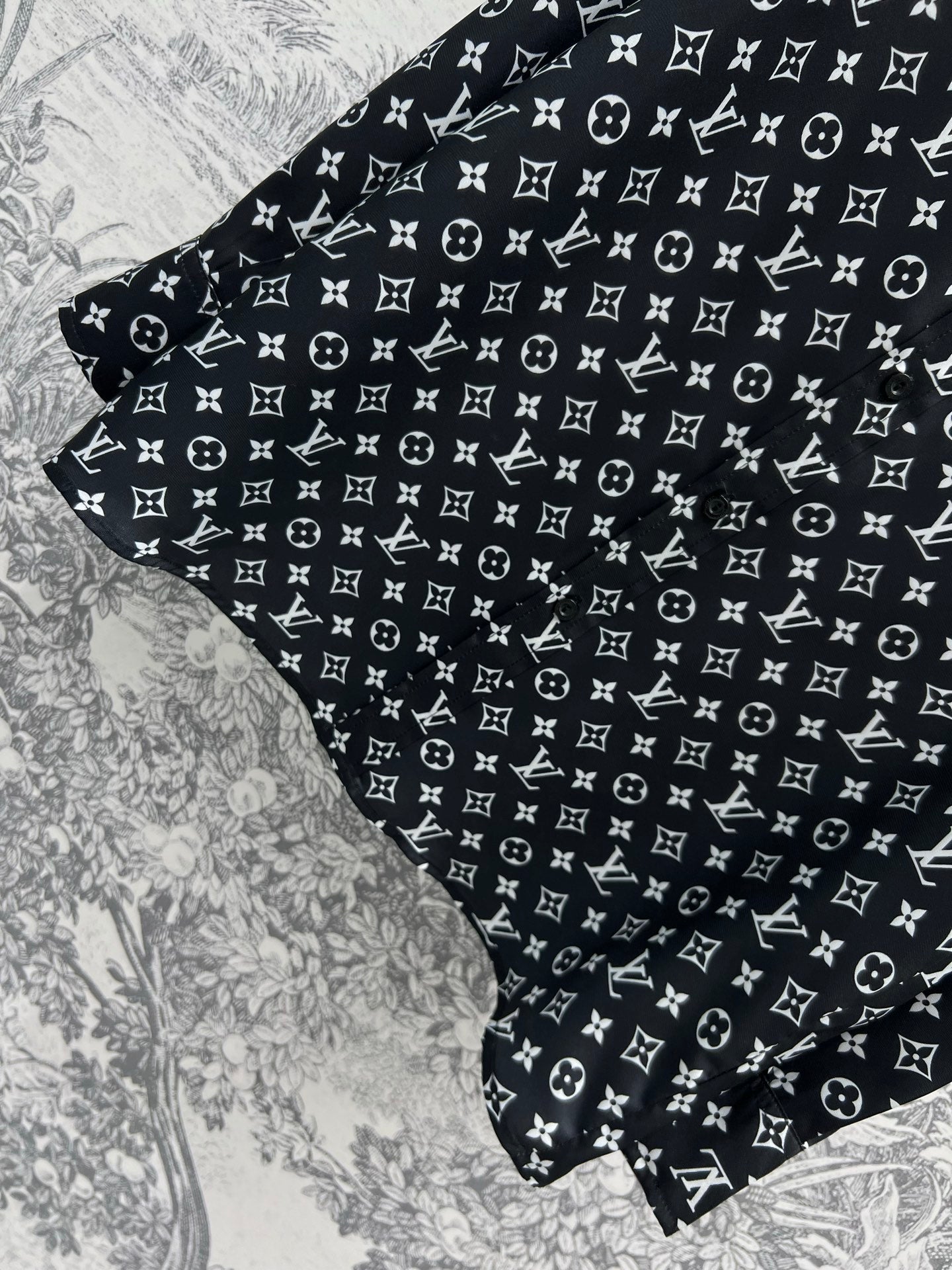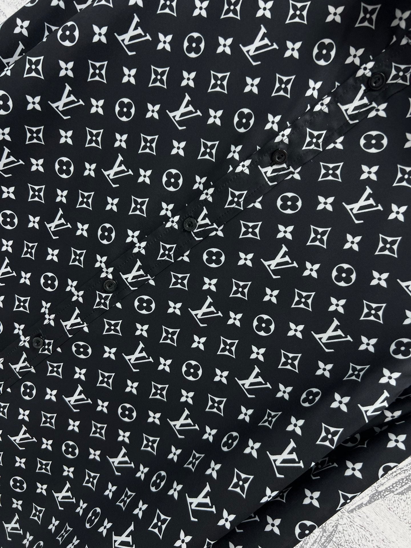 LV 25 Flower Barrage Print Lapel Shirt Black Polyester