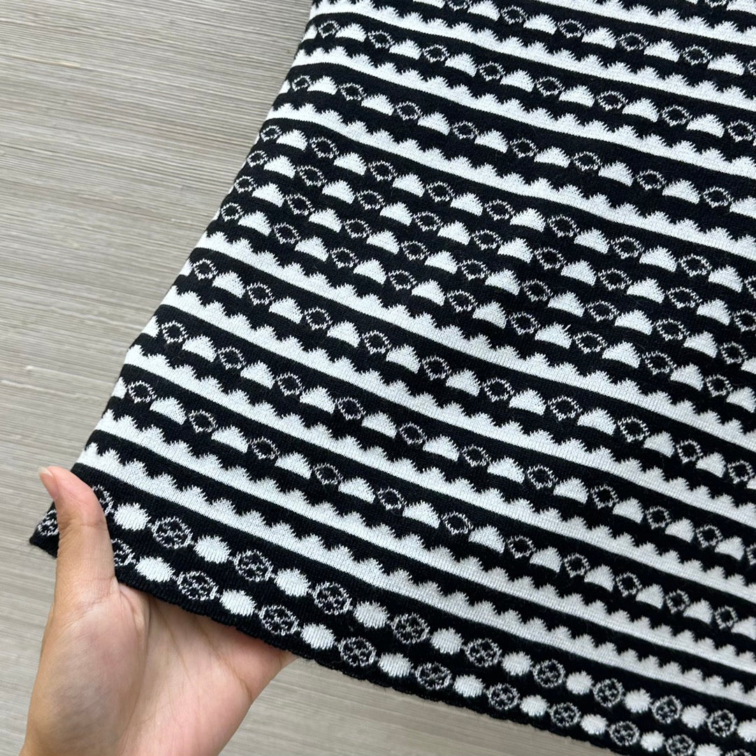LV 25 Geometric Wave Pattern Round Neck Knitted T- Shirt Black Wool