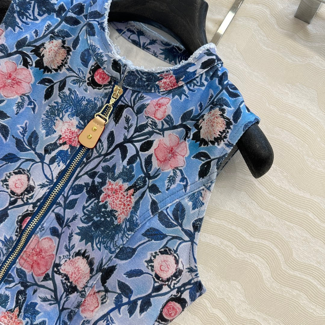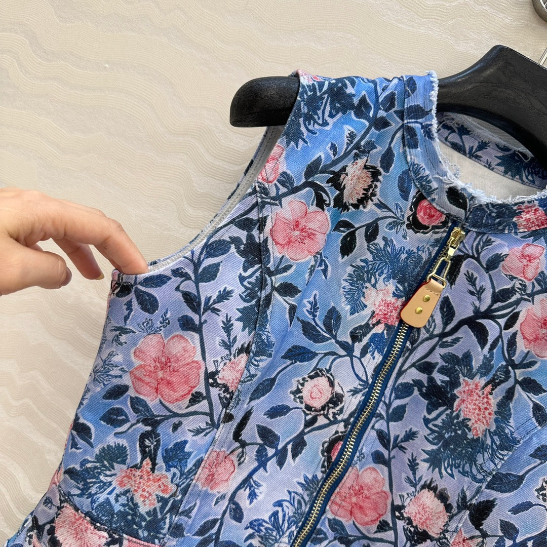 LV 25 Monogram Floral Denim Vest Dress Multicolor Cotton