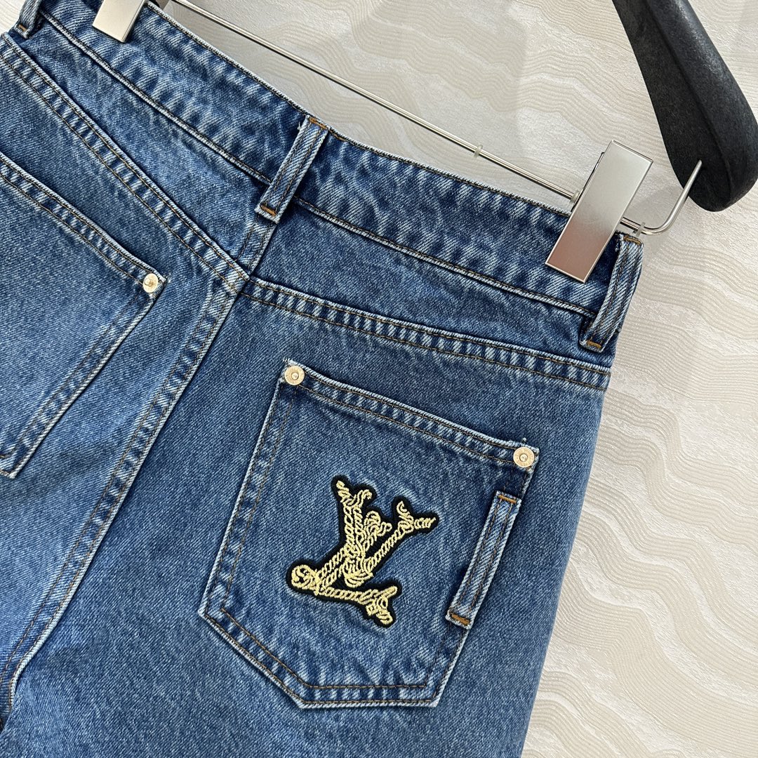 LV Denim Fabric Short Blue Cotton