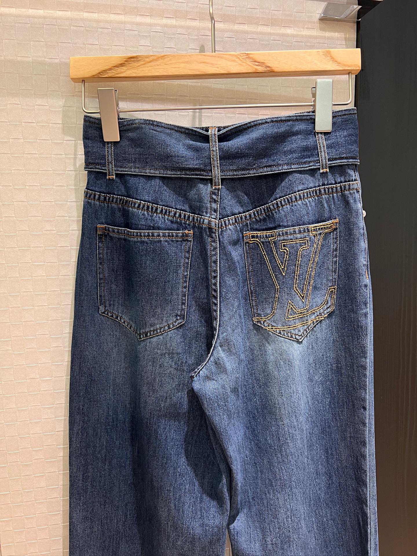 LV Large Belt Decorated Jeans Blue Cotton