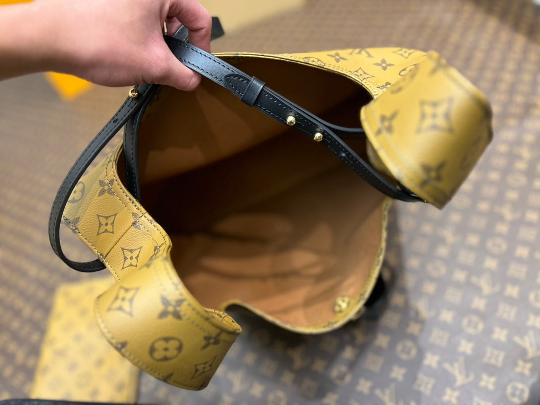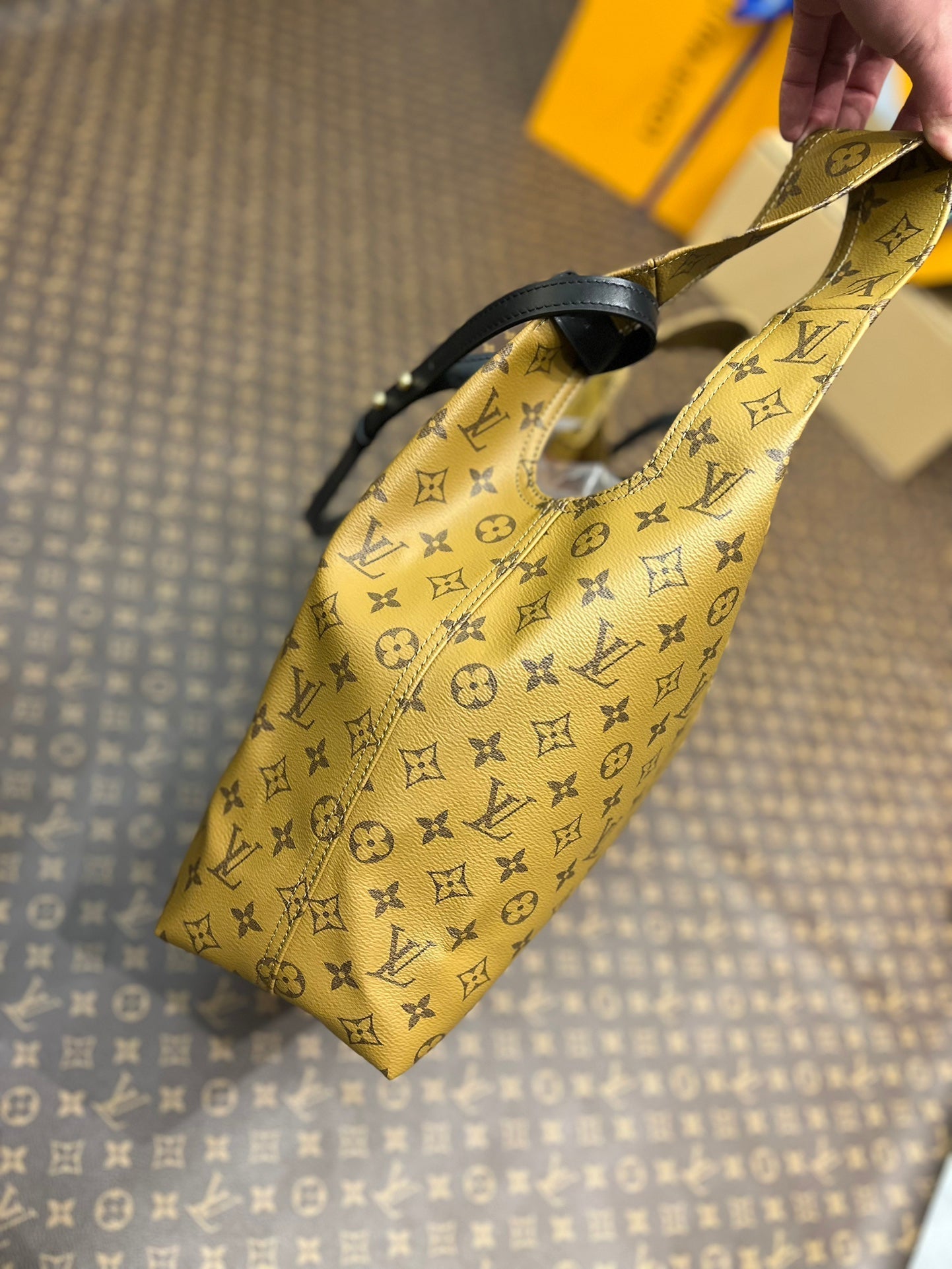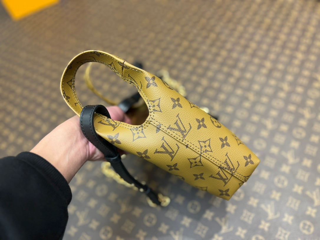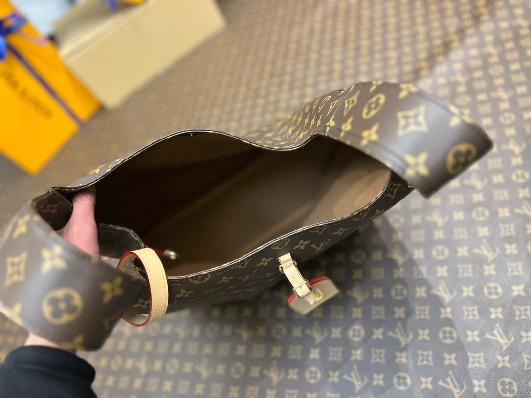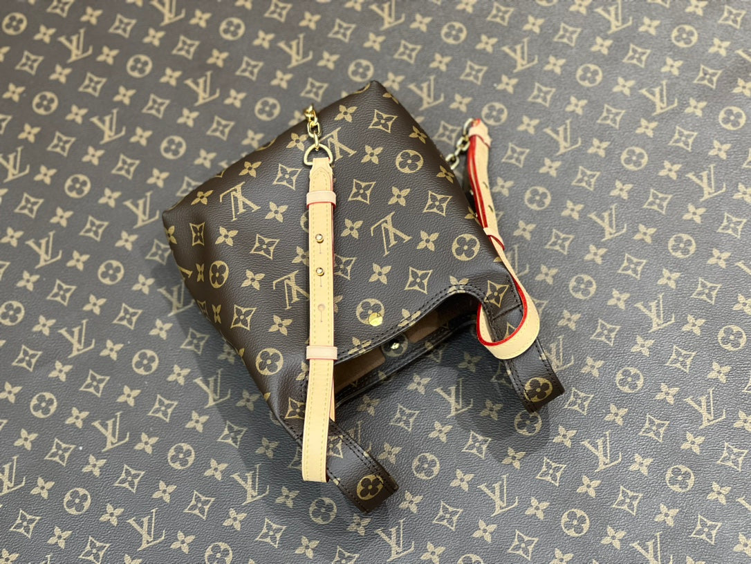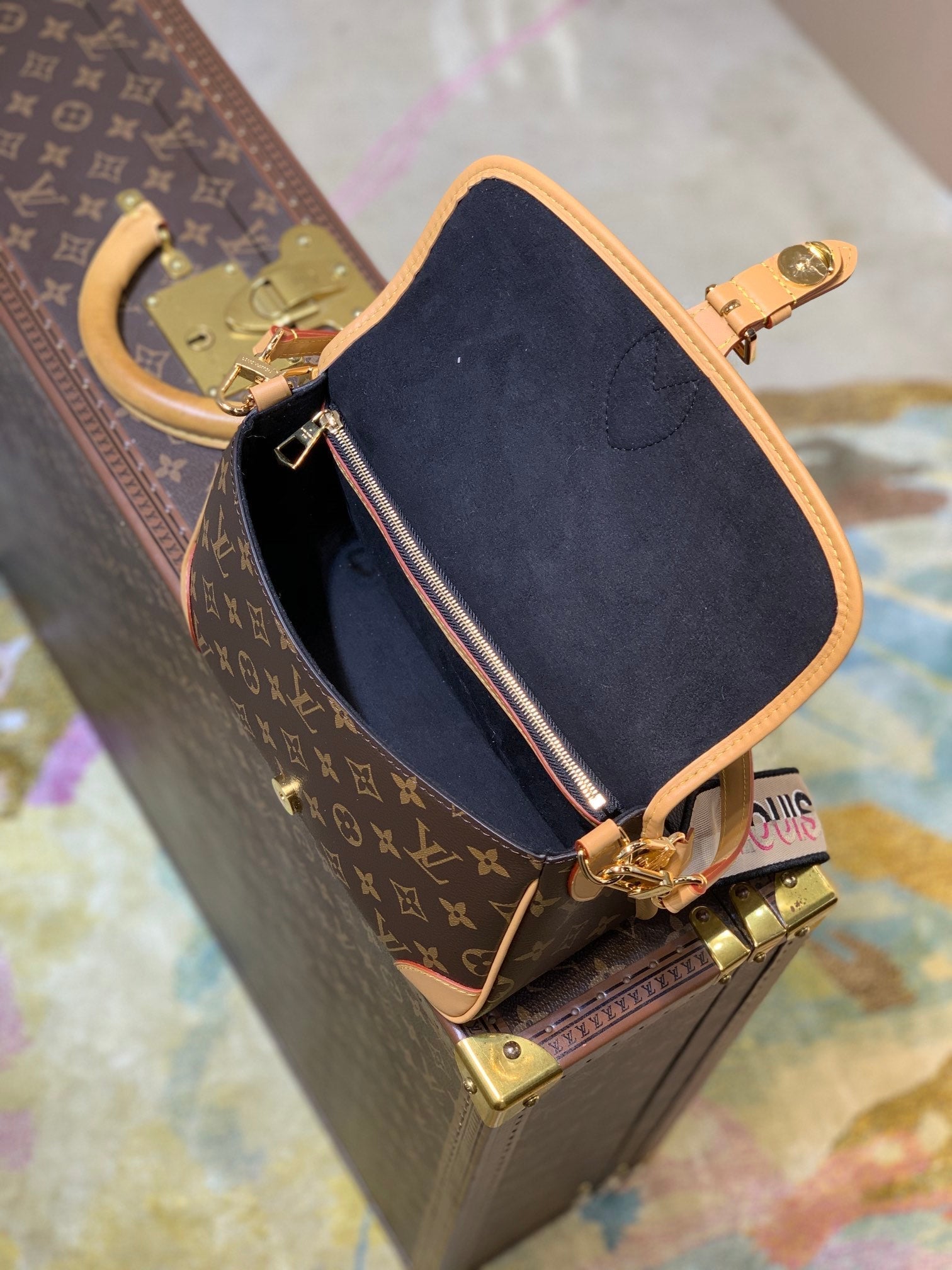 LV Side Trunk Bag 30cm Brown Beige Canvas Cowhide