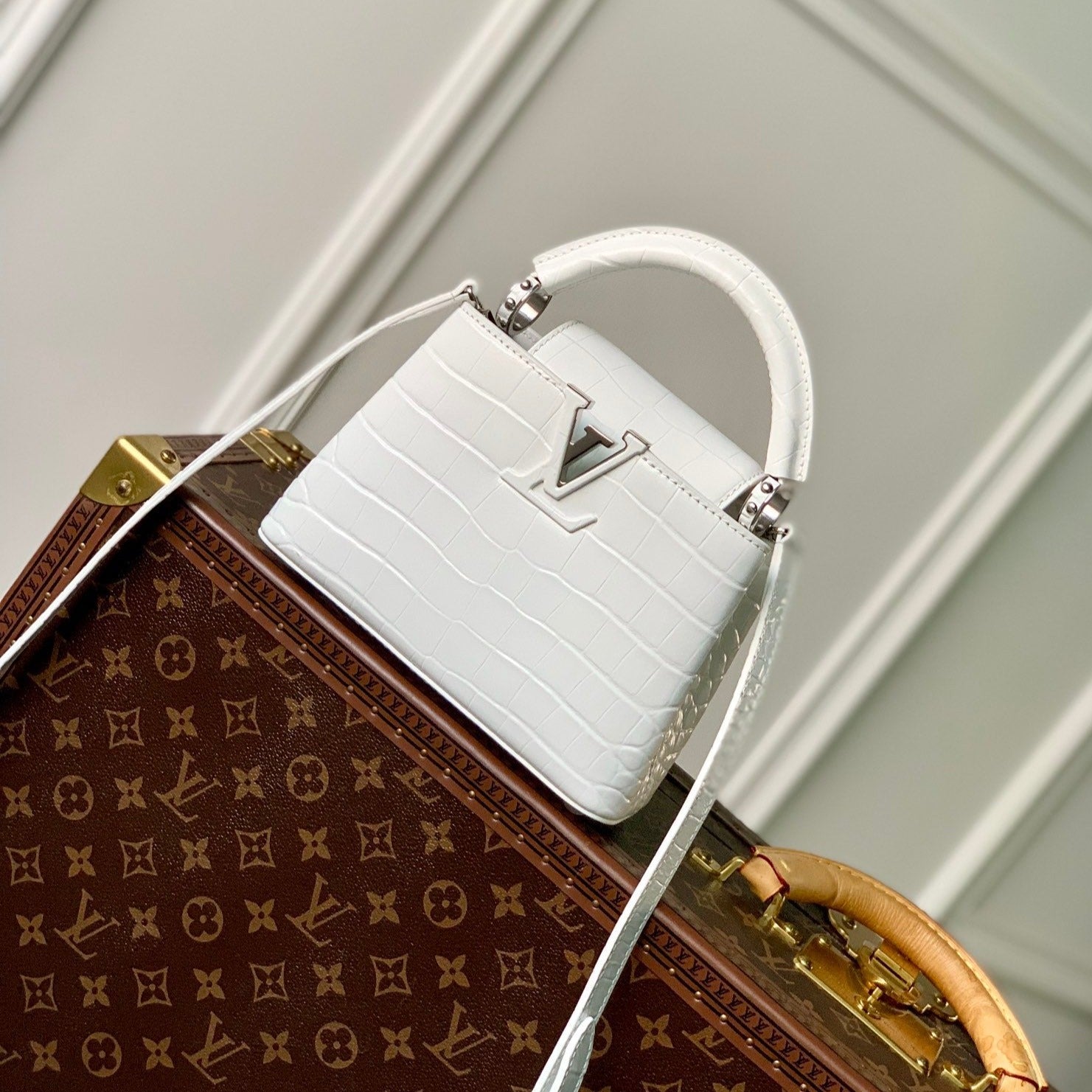 CAPUCINES MINI 21 WHITE CROCODILE EMBOSSED CALFSKIN SILVER HARDWARE