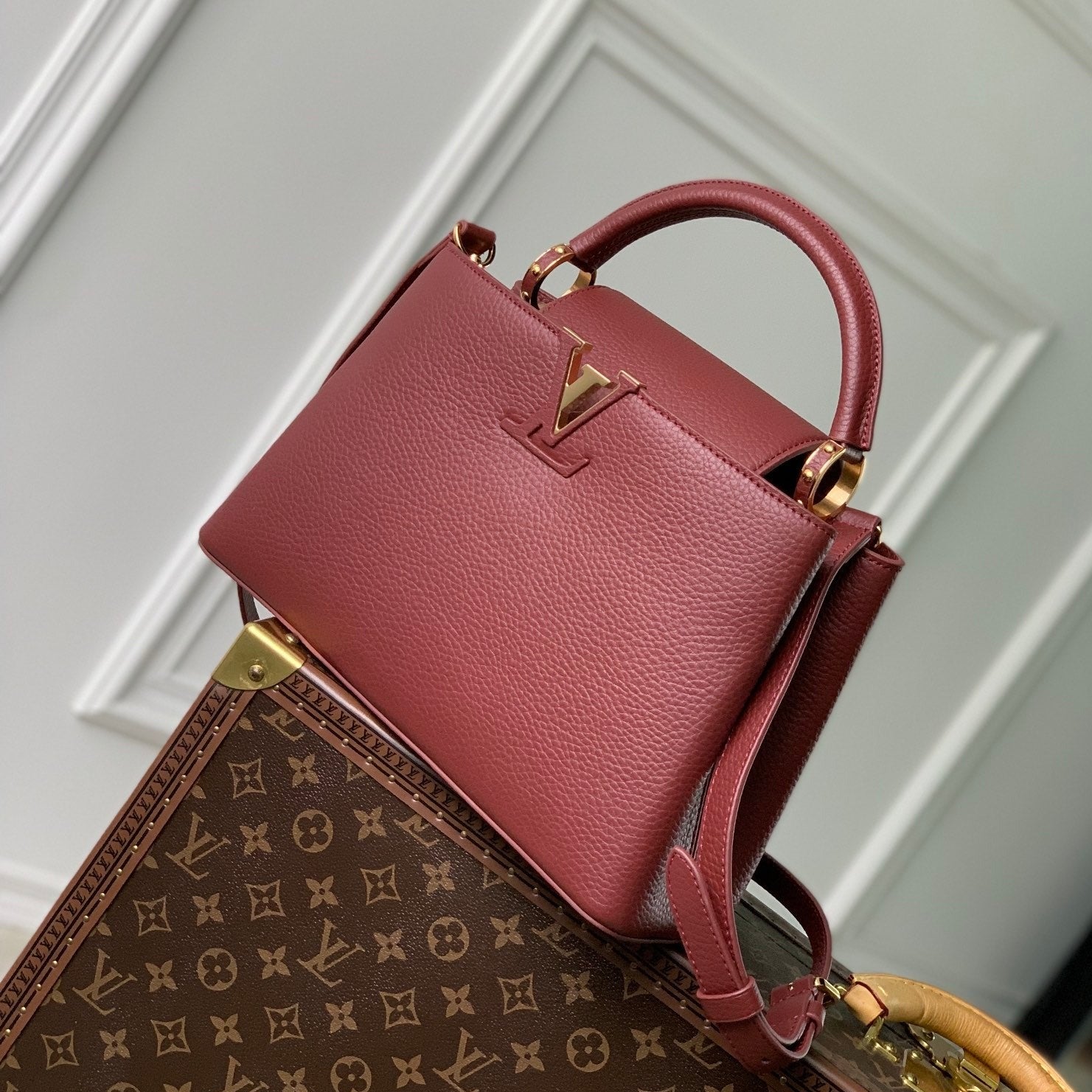 capucines mm 31.5 burgundy taurillon leather gold hardware