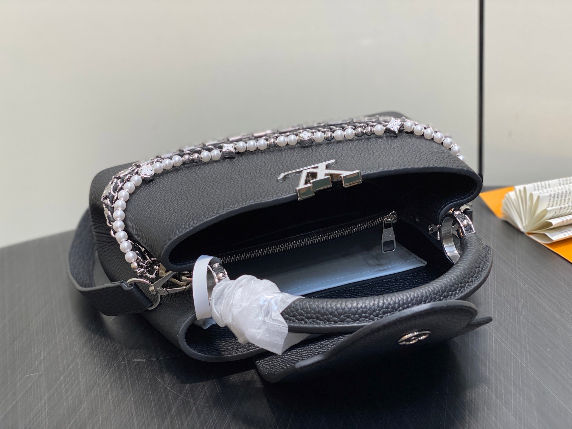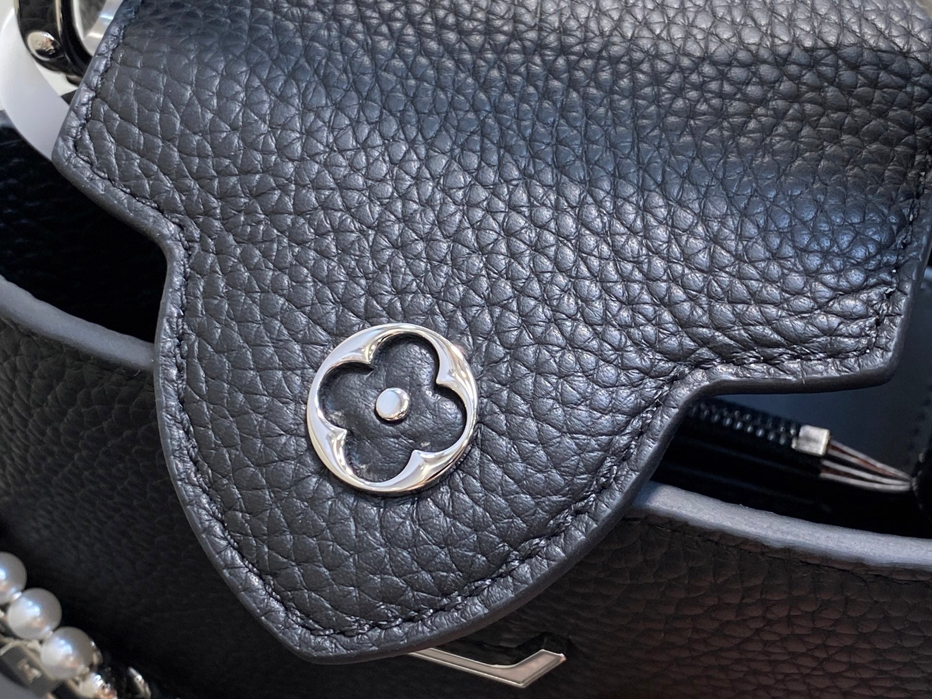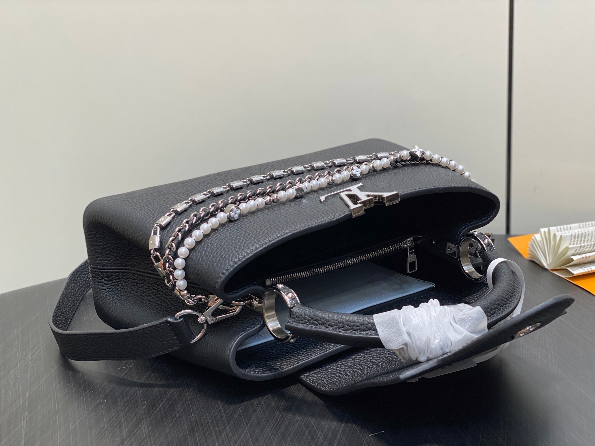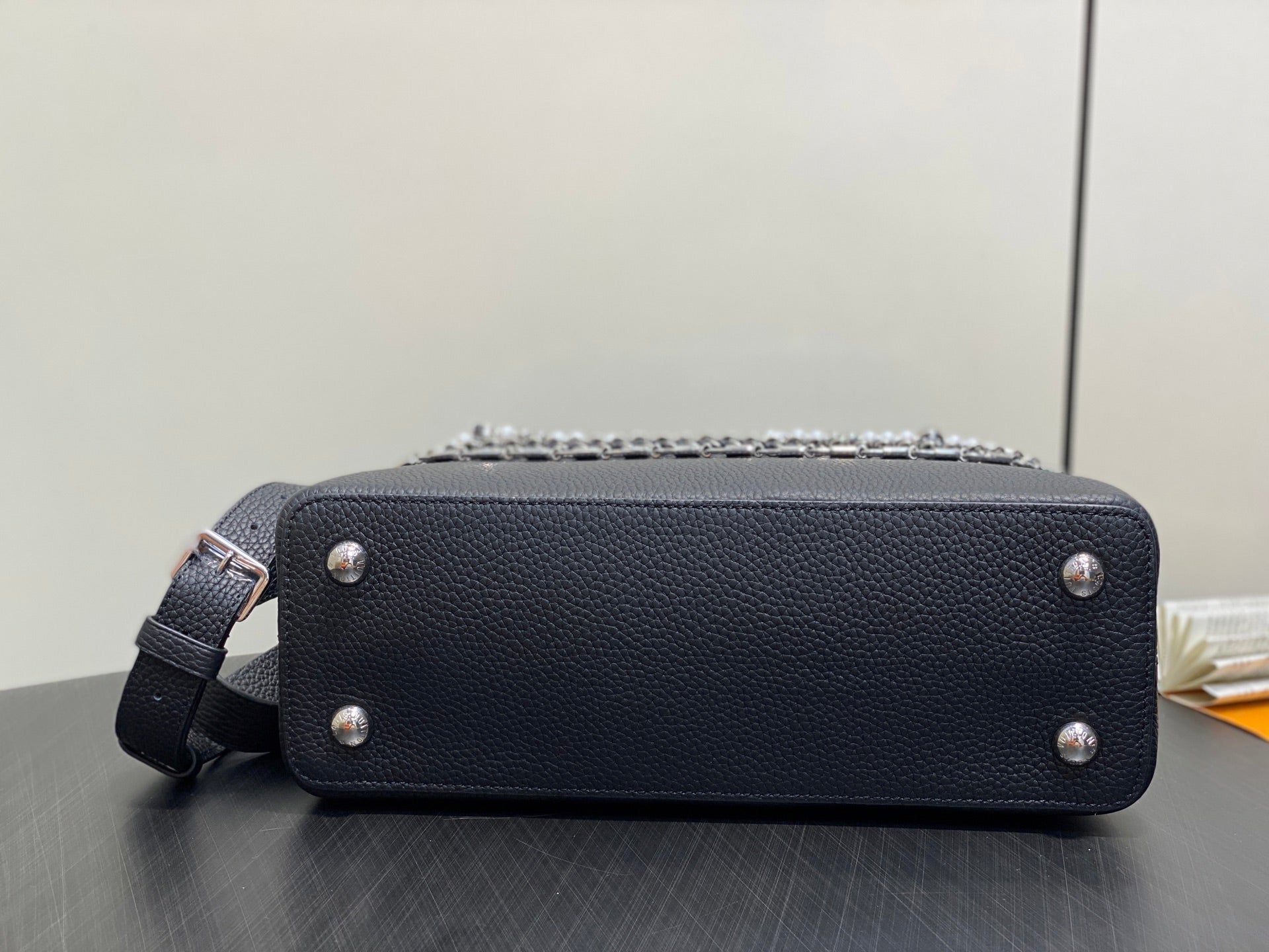 CAPUCINES MM 31 BLACK TAURILLON SILVER HARDWARE