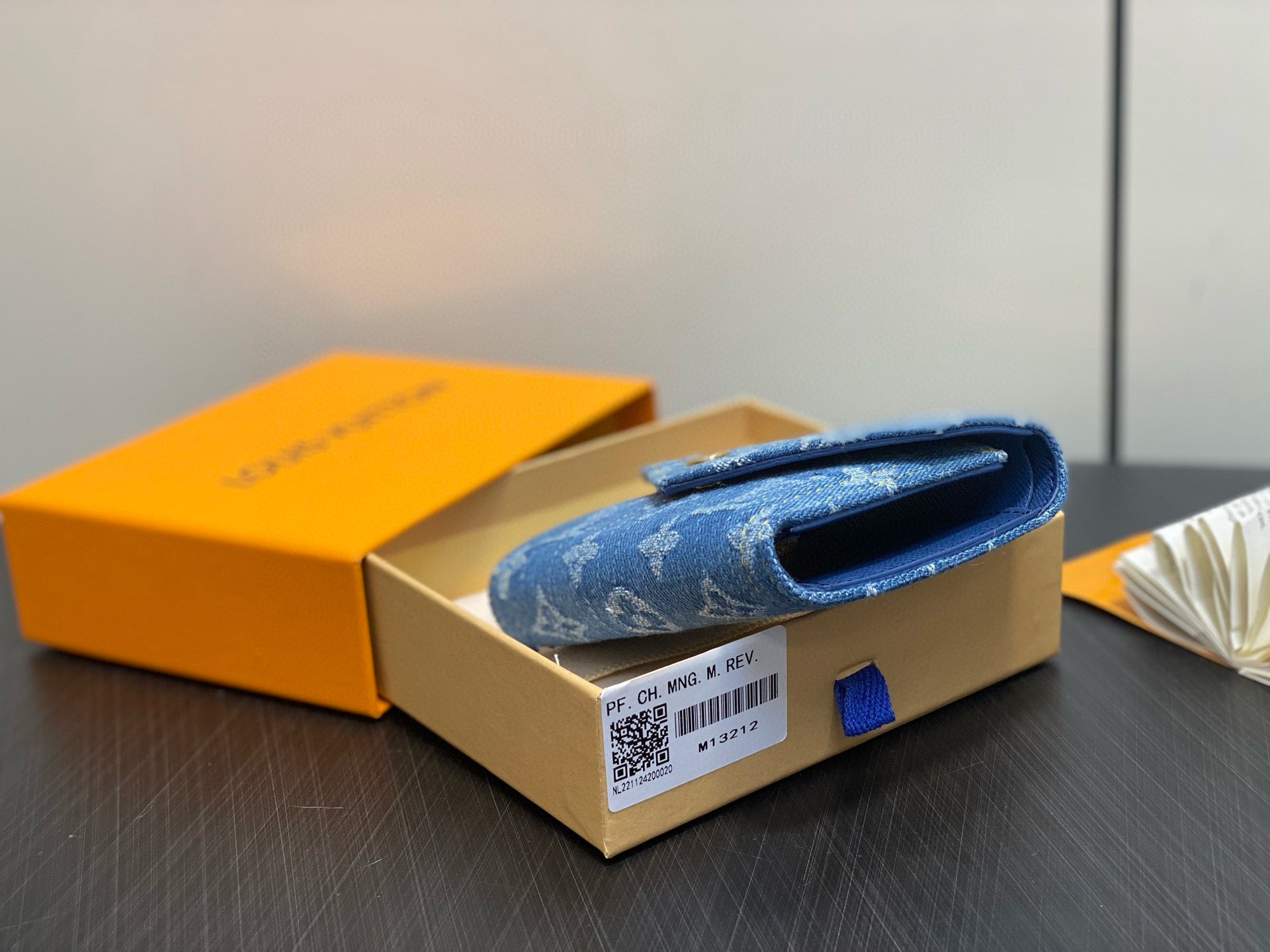LV Victorine Monogram Wallet Denim Blue Cotton Cowhide
