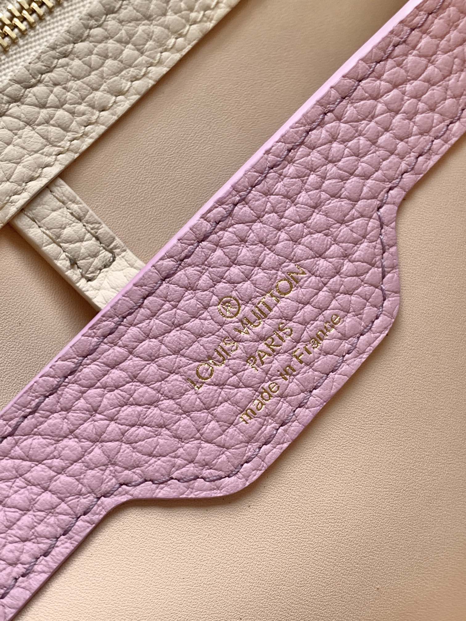 CAPUCINES BB 27 IN PEARL WHITE TAURILLON GOLD HARDWARE