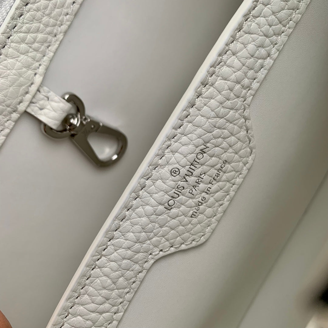 CAPUCINES BB 27 WHITE TAURILLON TURQUOISE SILVER HARDWARE