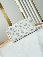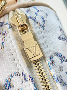 SPEEDY BANDOULIÈRE 20 IN WHITE MONOGRAM JACQUARD FABRIC AND BEIGE CALFSKIN TRIM