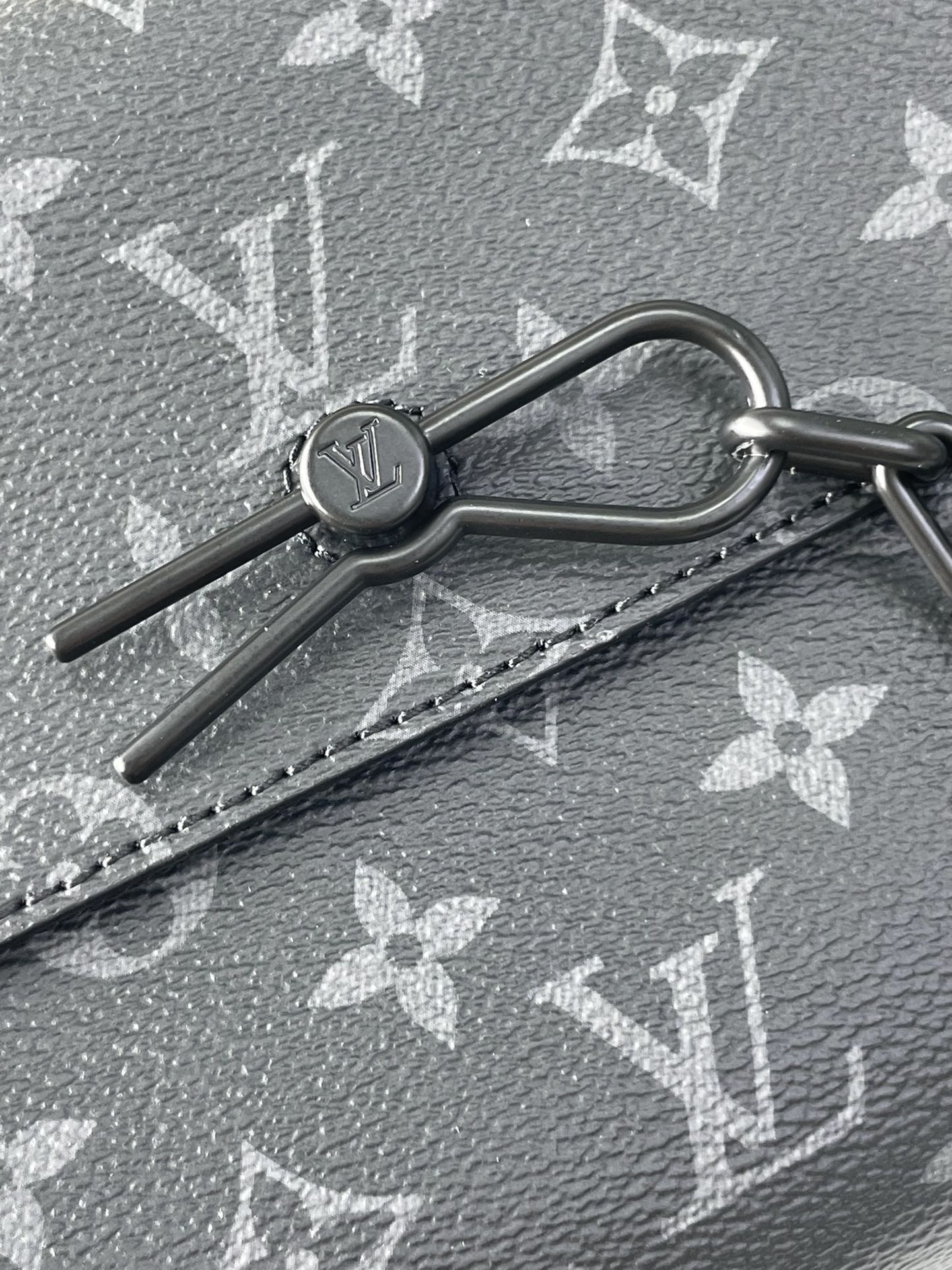 GETAWAY MESSENGER 18 IN GUN METAL MONOGRAM ECLIPSE CANVAS