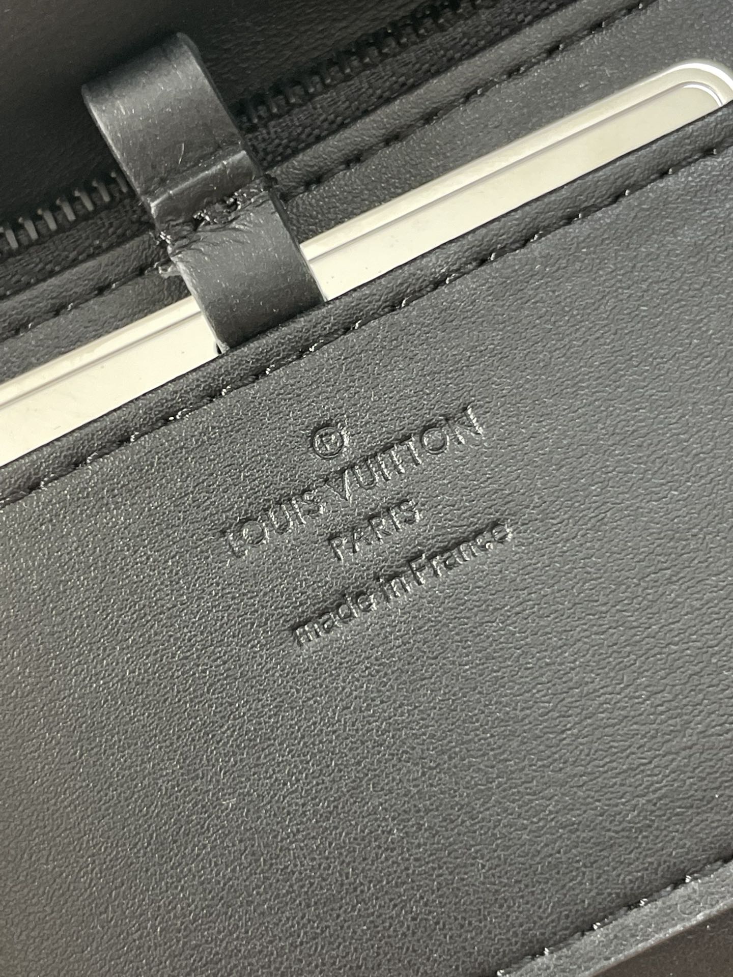 GETAWAY MESSENGER 18 IN BLACK EMBOSSED CALFSKIN