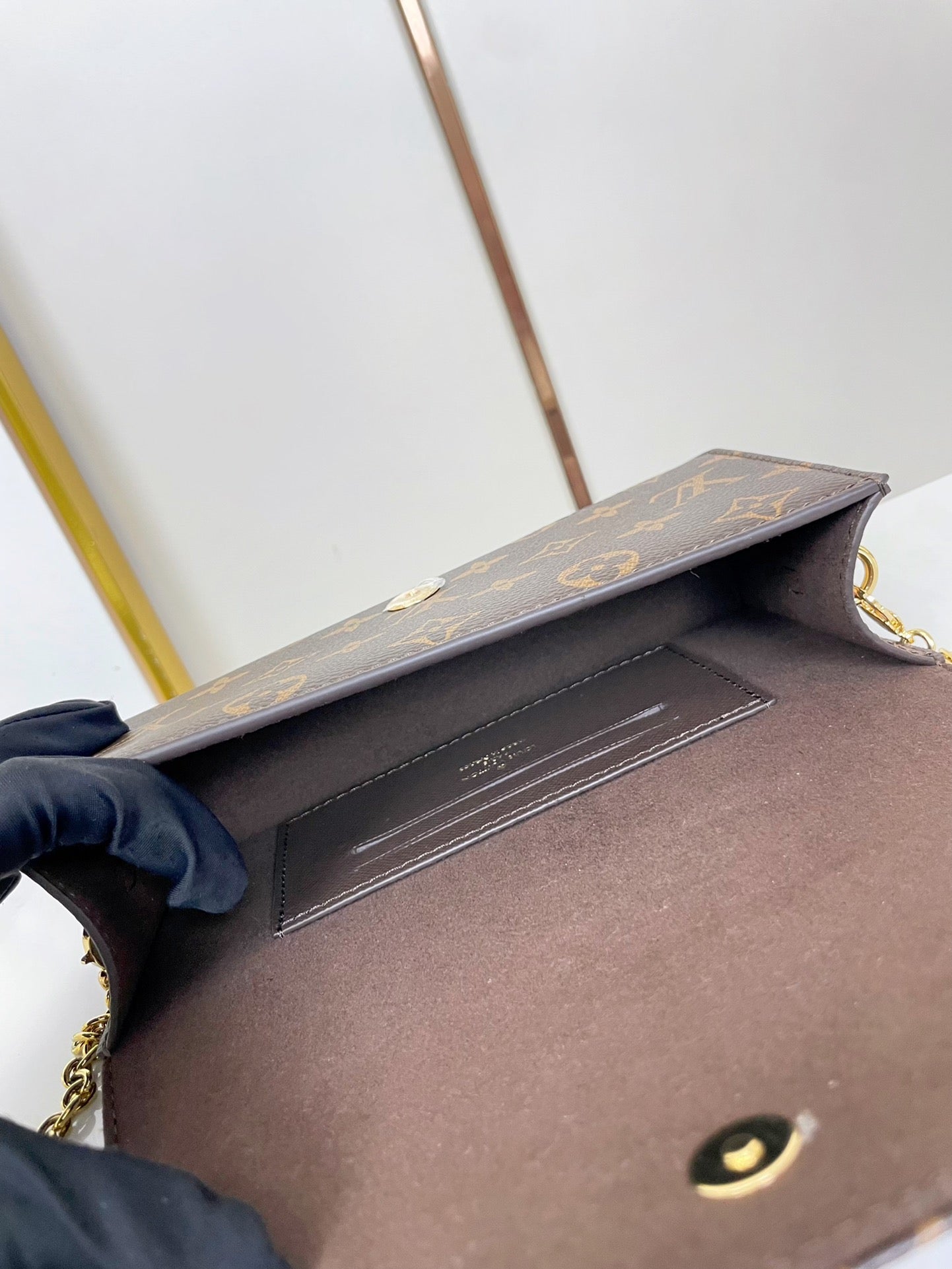 WALLET ON CHAIN LILY 20 IN BROWN MONOGRAM CANVAS GOLD HARDWARE