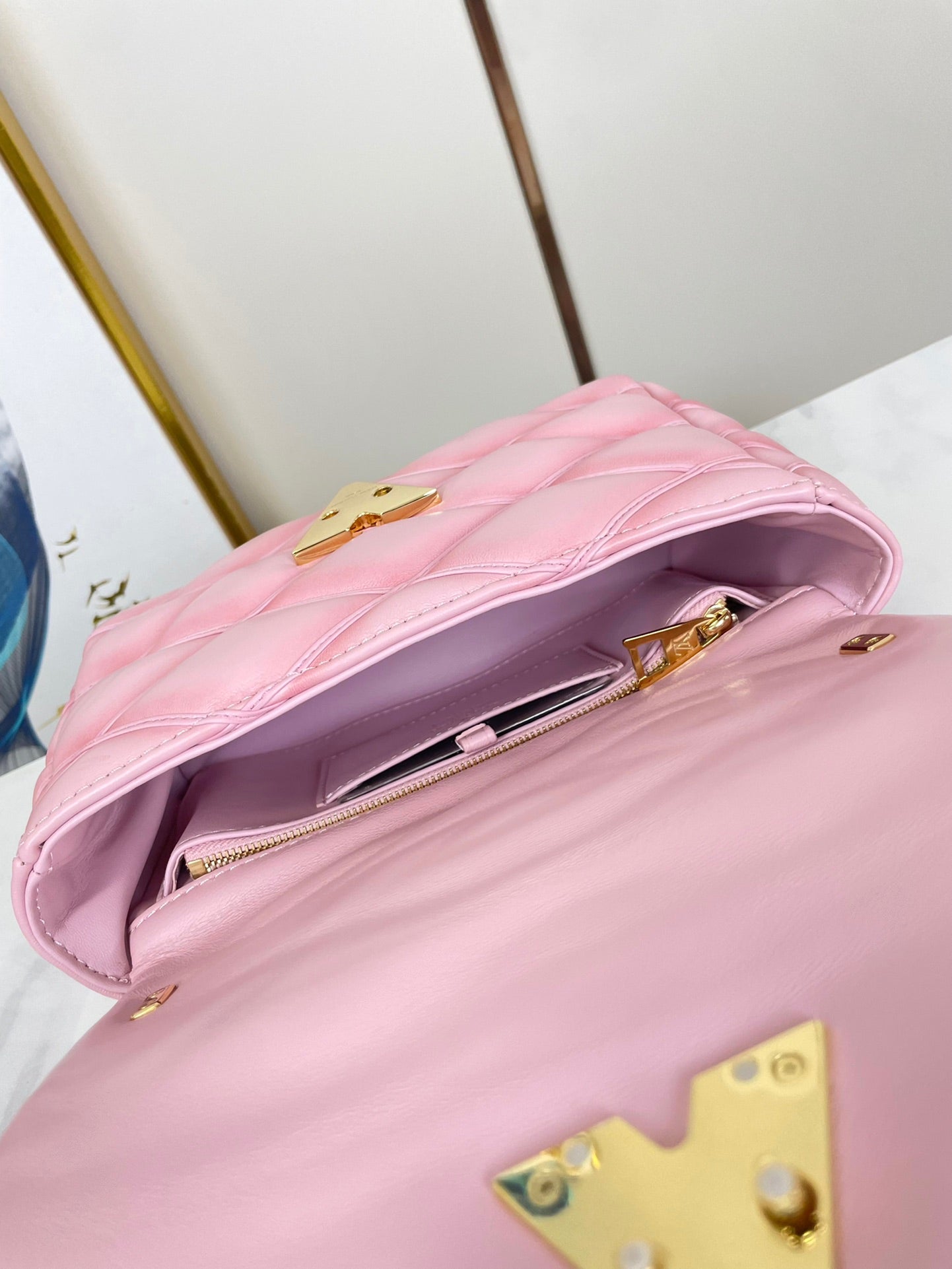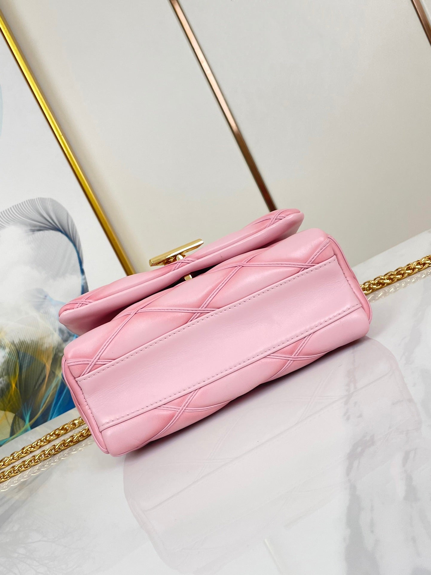 GO-14 MM 23 IN FRAMBOISE QUILTED LAMBSKIN GOLD HARDWARE