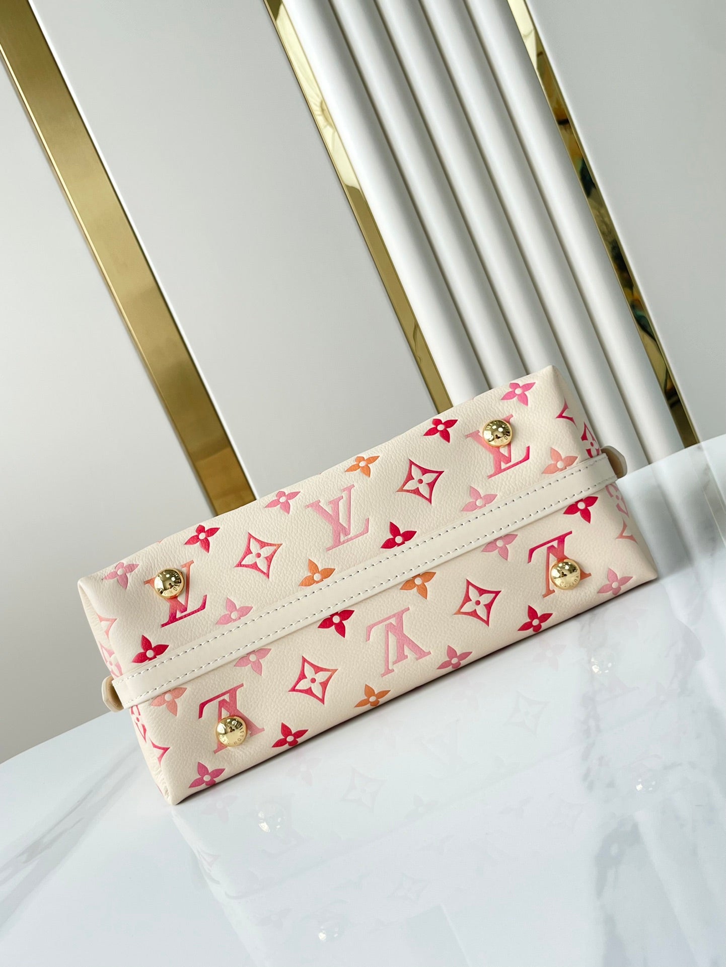 EASY POUCH ON STRAP 19 IN SUNRISE AQUARELLE MONOGRAM EMPREINTE LEATHER GOLD CHAIN