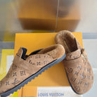 LV 25 Birkenstock Platform Slippers Brown Suede Wool 576215