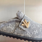 LV 25 Birkenstock Platform Slippers Gray Suede Wool 576219