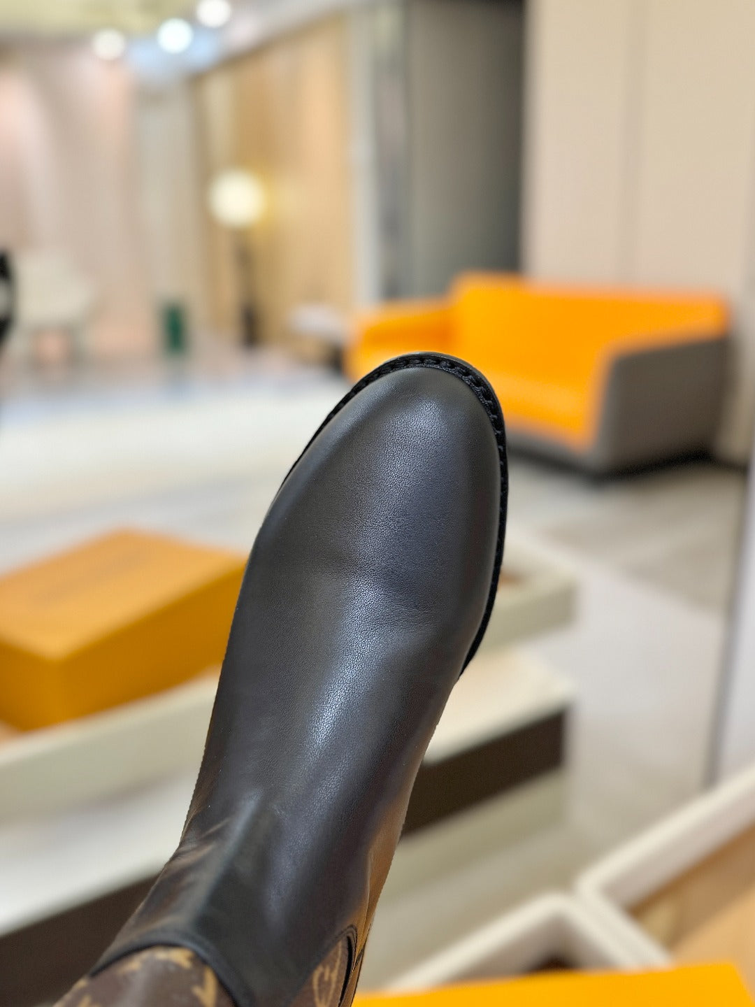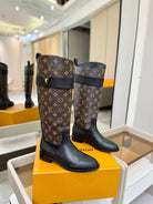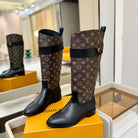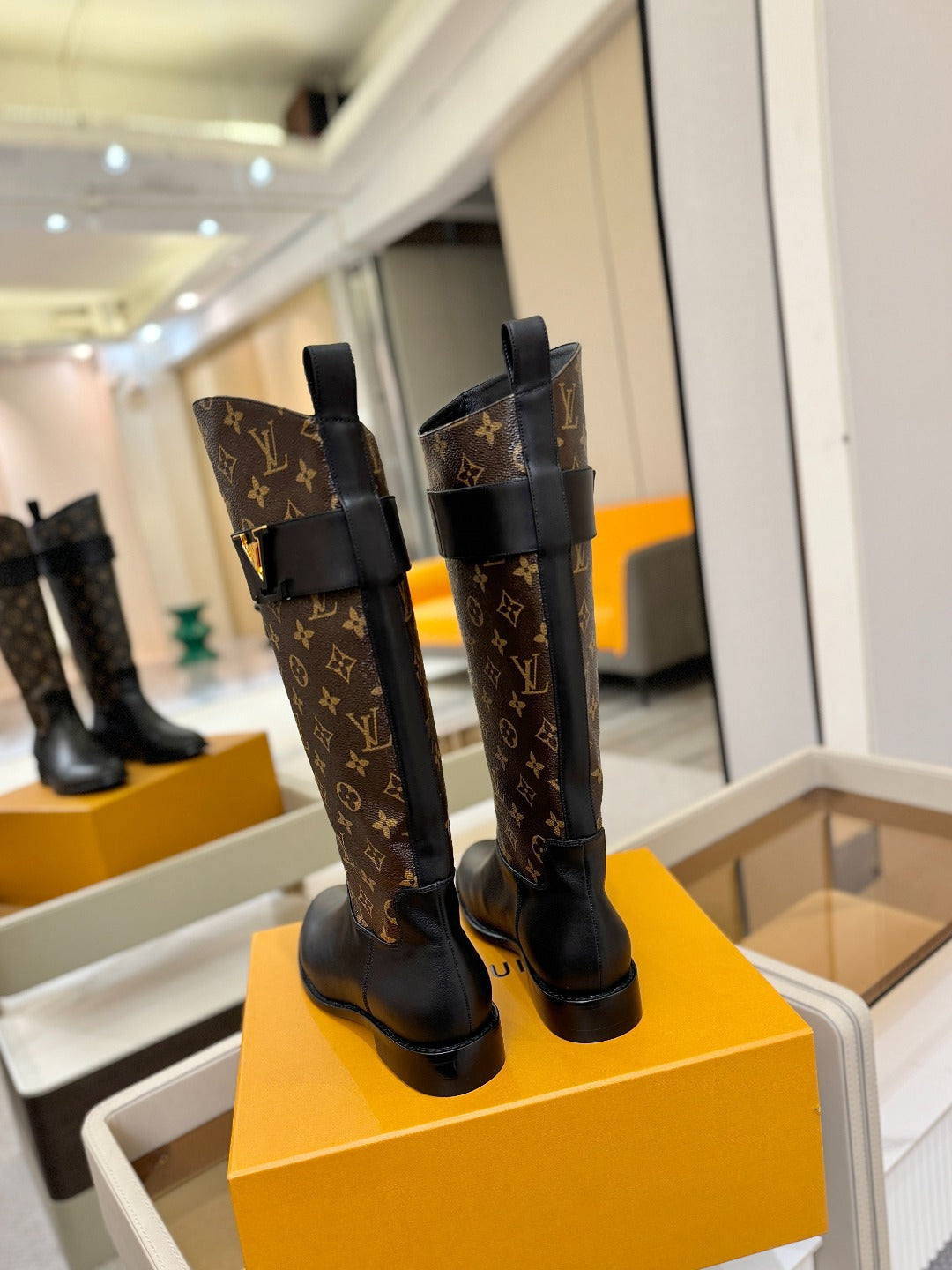 LV 25 Metal Buckle Riding Boots Monogram Brown Cowhide 573889