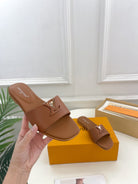 lv capri flat mule dark brown calfskin