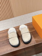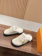 LV Cosy Flat Comfort Clog Beige Fur Lining Suede