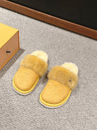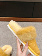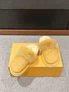 LV Flat Mule Yellow With Fur Monogram Suede