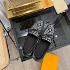 LV GLORIA FLAT LOAFER DENIM FLORAL FABRIC BLACK