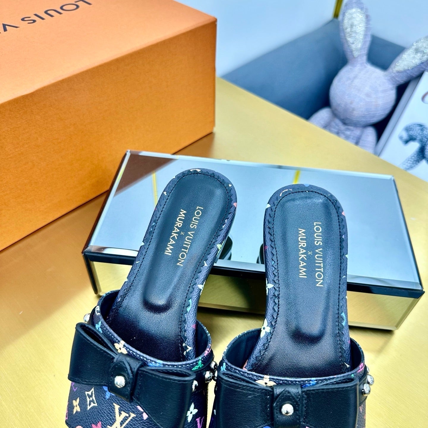 LV 25C LV x TM 6AM Flat Mule Black Bow Black with Monogram Multicolore Leather 219950
