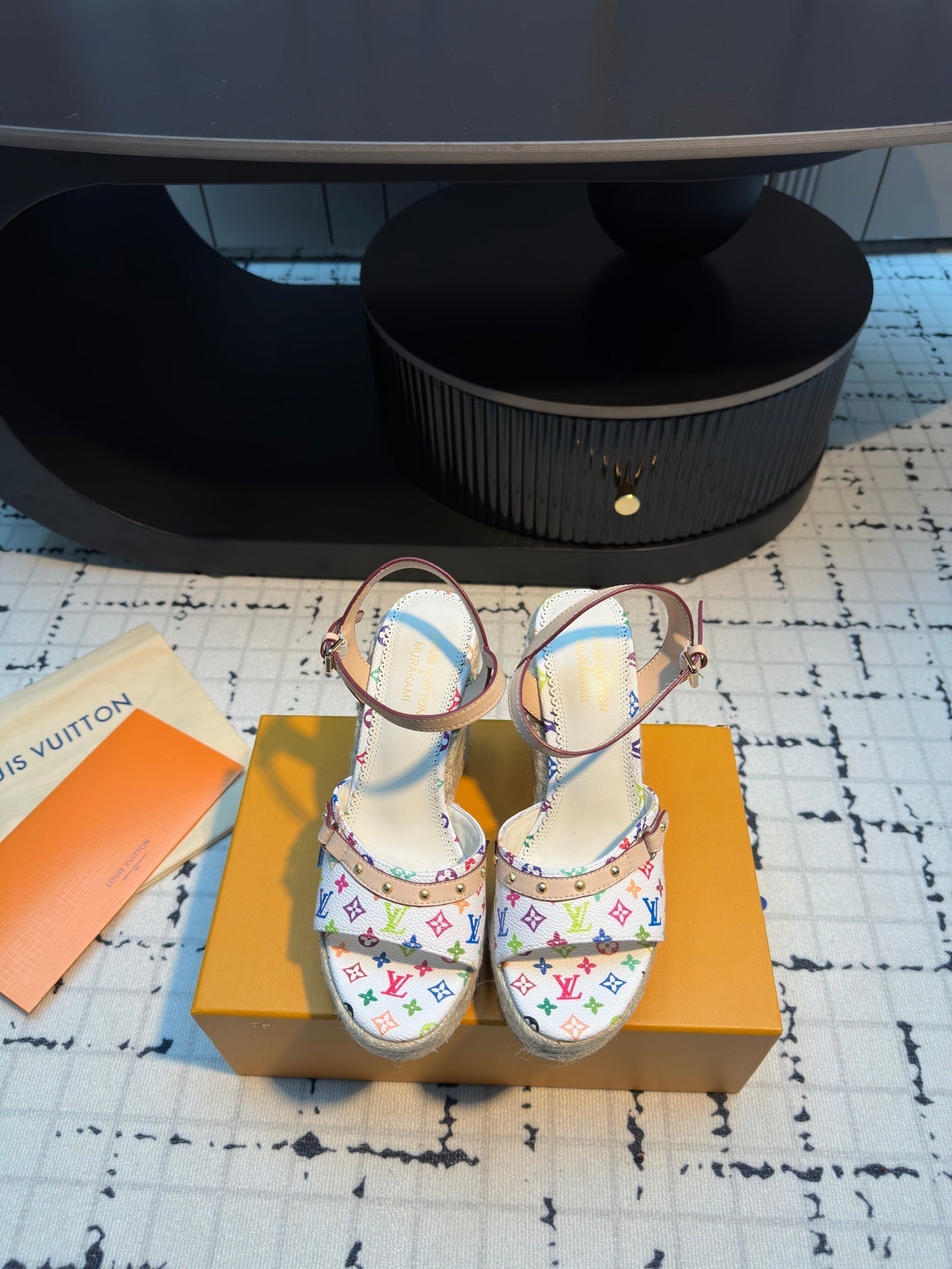 LV LV x TM Helios Wedge Sandal White with Monogram Multicolore Leather 218918